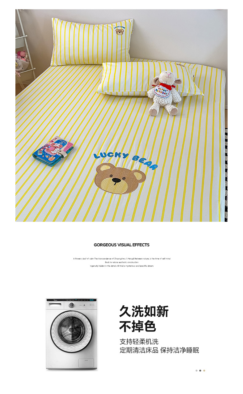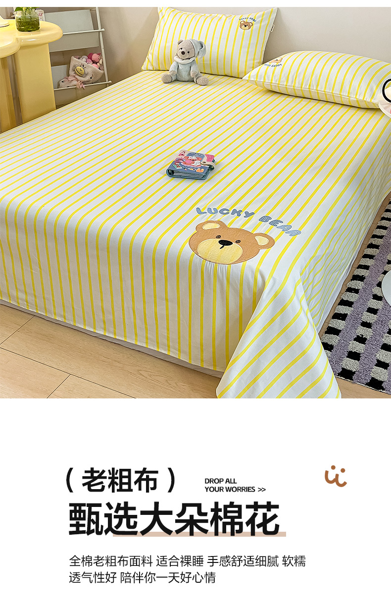 商品名称:雅居纺家纺 2026新款全棉绣花A类老粗布床单单件床单单品凉席席子 老粗布-幸运熊