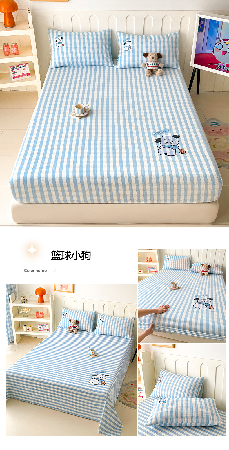 (总)雅居纺家纺 2026新款A类加厚三明治底绣花冰藤席学生宿舍床床单款凉席席子,冰淇淋萌狗,动感小狗,七彩虹,万事不南,小象家族,星星腊肠狗,幸运巴拉