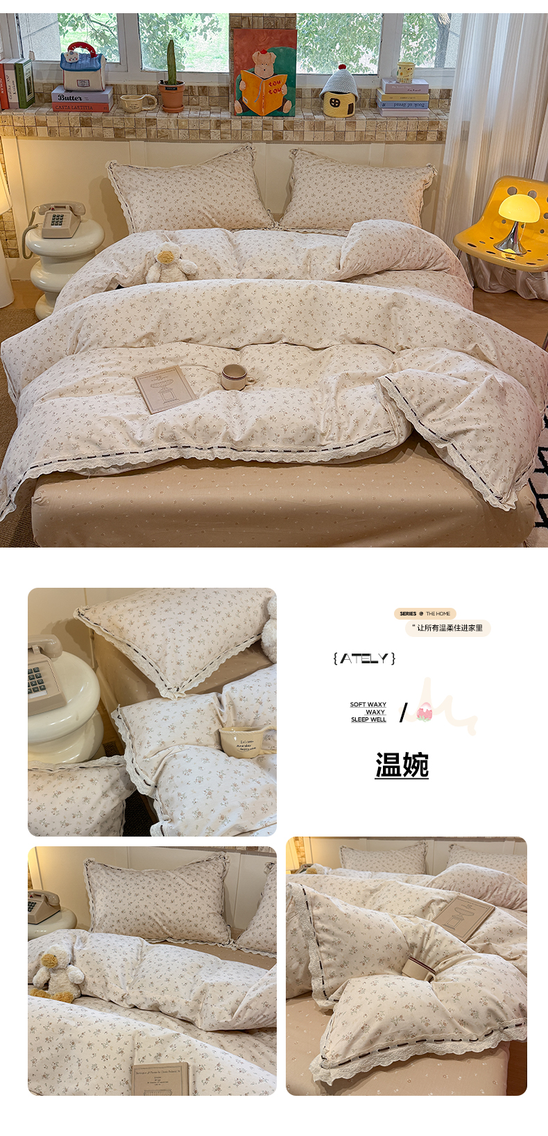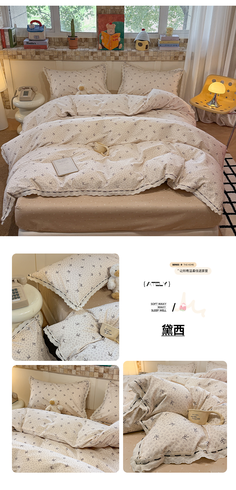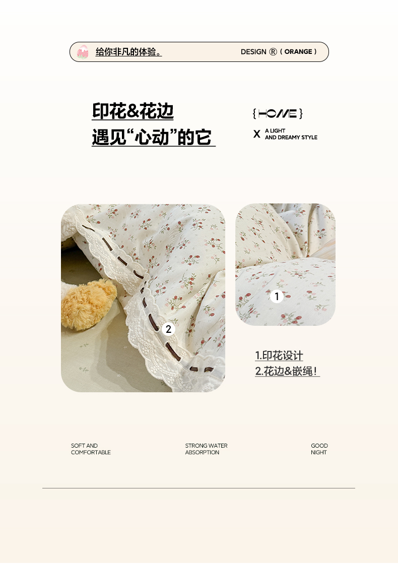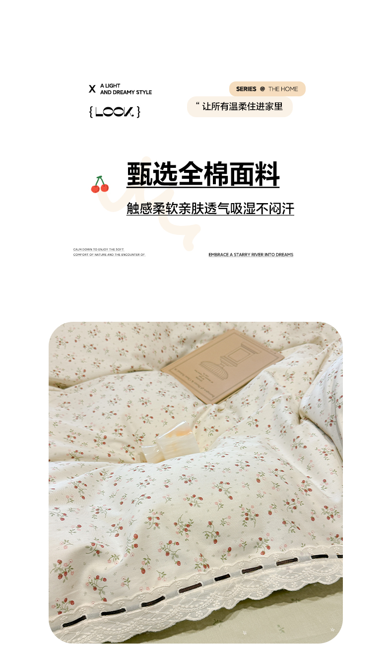 (总)澳萝拉 2022新款全棉印花花边四件套,点点心动,蓝心邂逅,萌系甜心,心动初恋