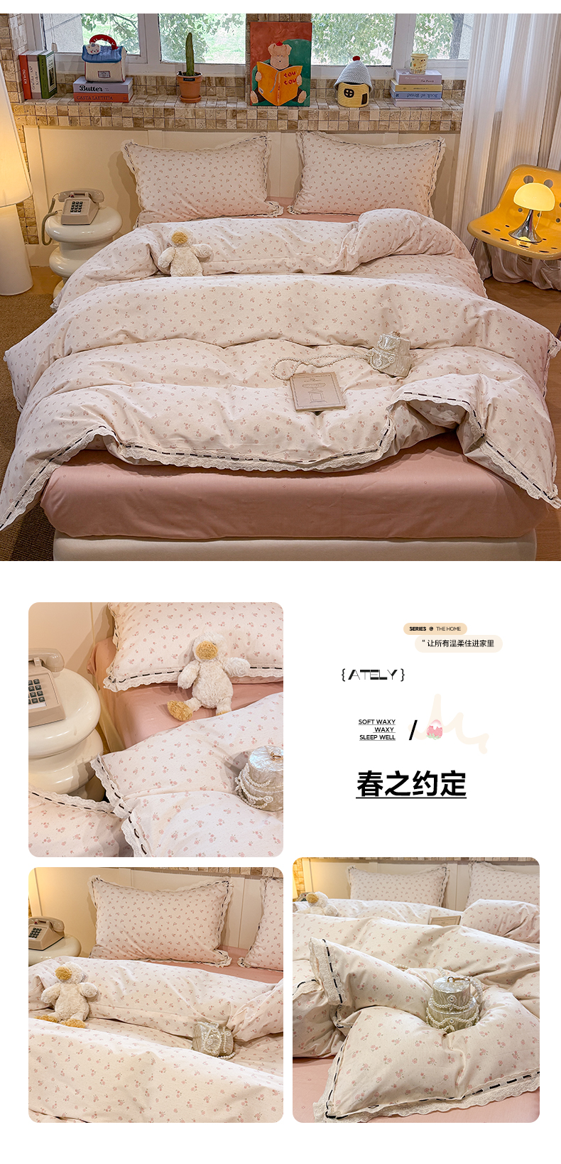 (总)澳萝拉 2026新款全棉法式小清新复古碎花四件套,春之约定,黛西,粉枝蔓,芙兰,温婉,夜茉莉