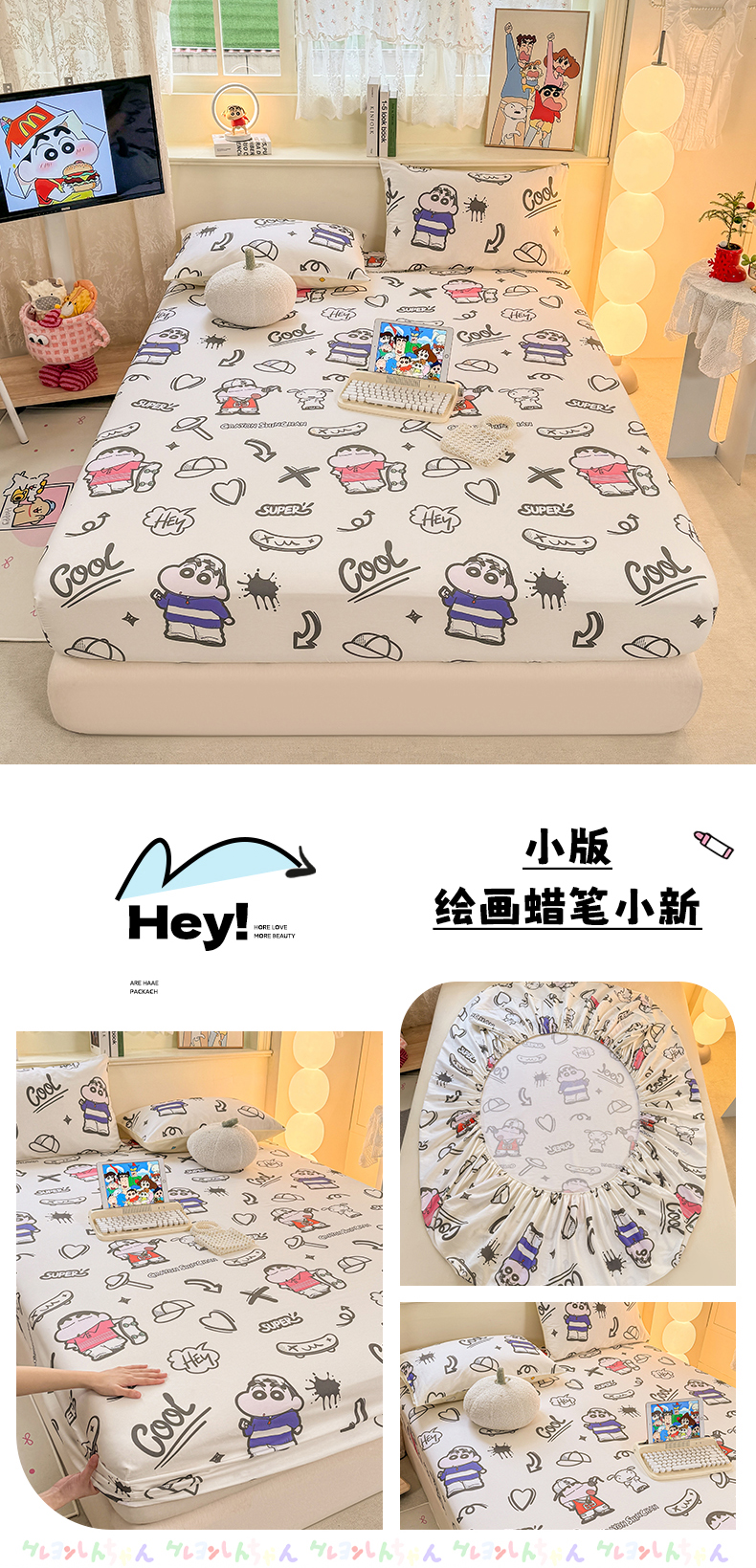 • 91家纺网 家纺一手货源 找家纺 博雅 2026新款蜡笔小新正版授权全棉纯棉小版单床笠床笠单件 小版-彩色星星蜡笔小新