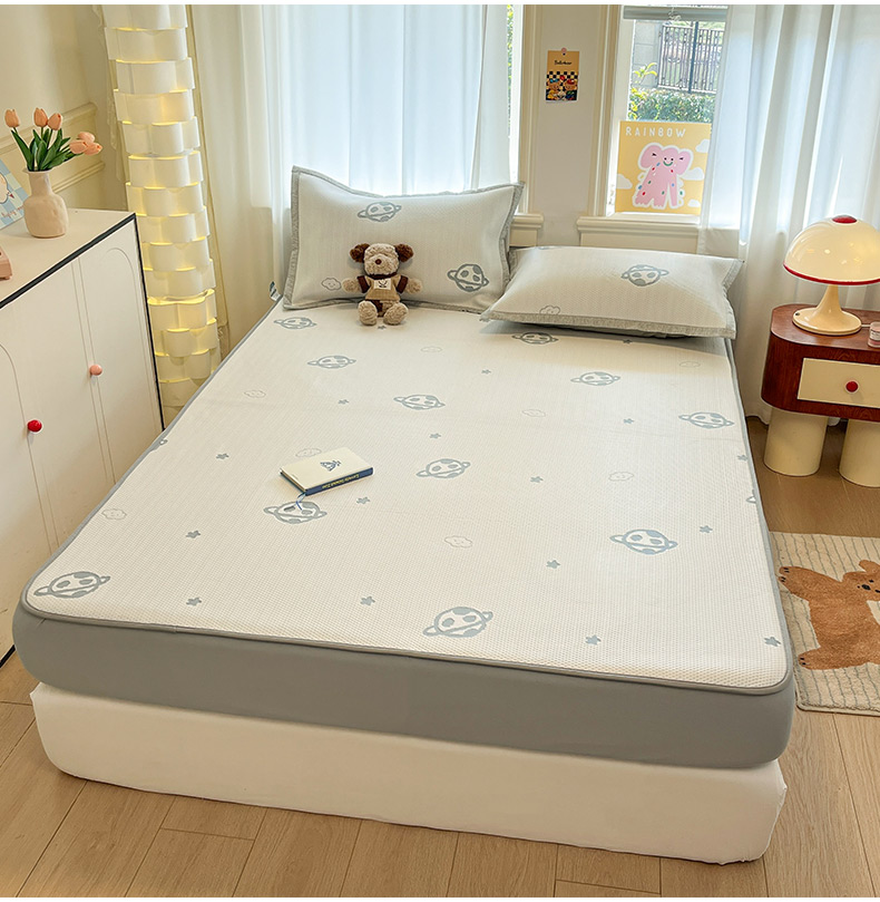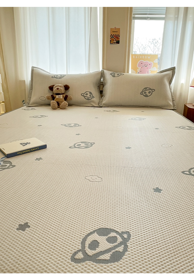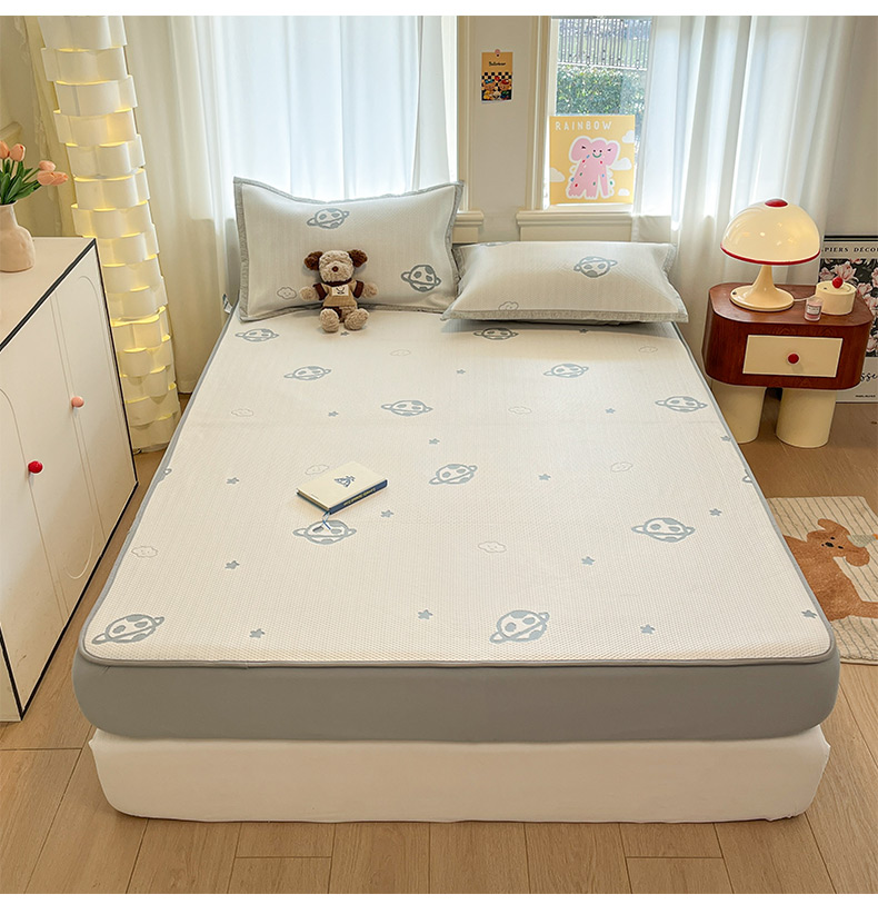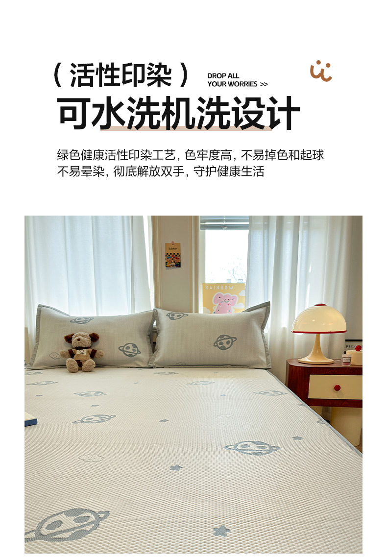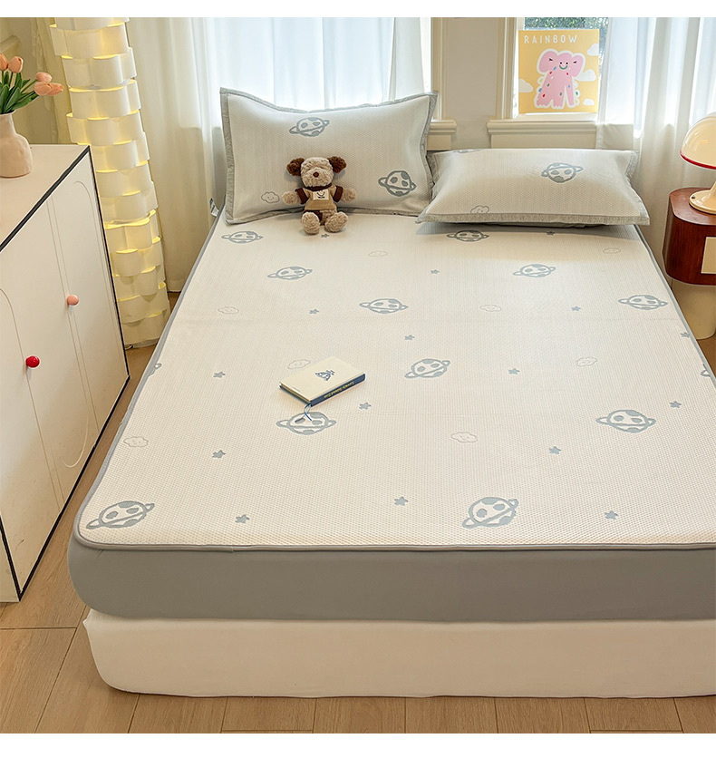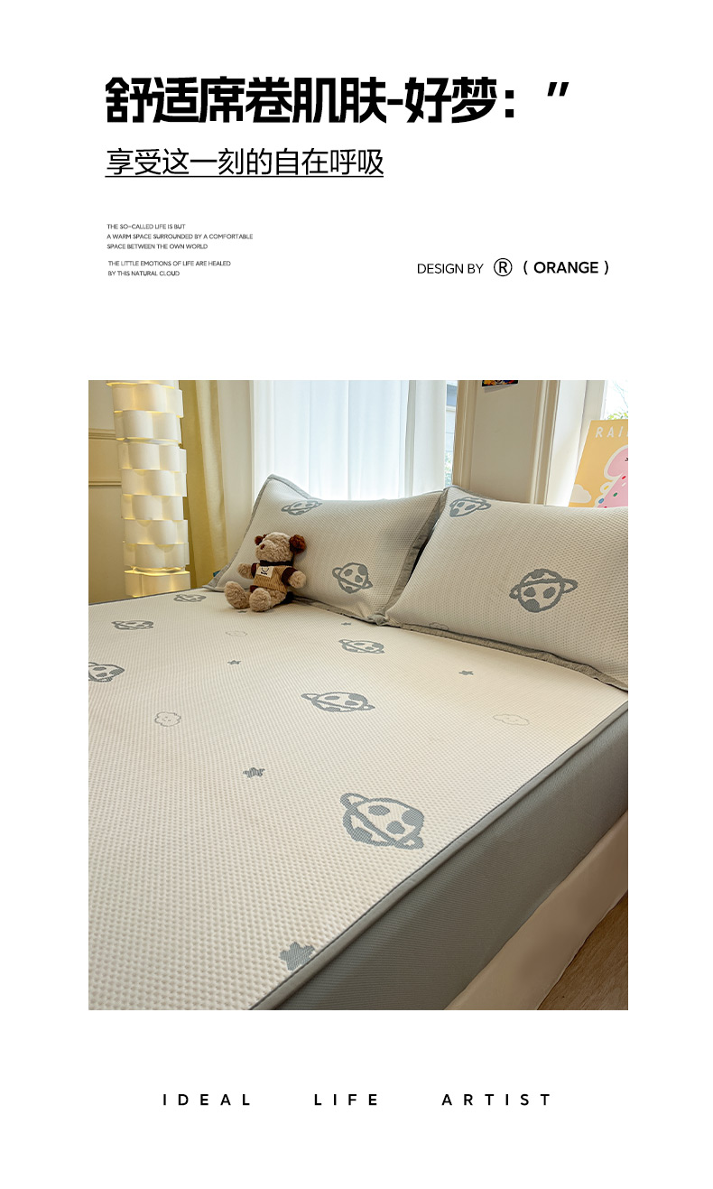 商品名称:雅居纺家纺 2026新款A类加厚三明治底提花小清新凉感席床笠款凉席席子 太空星球