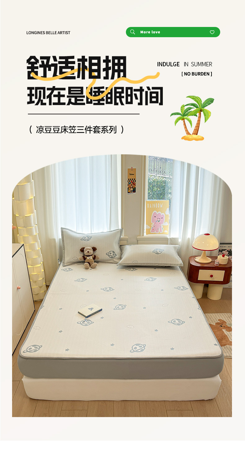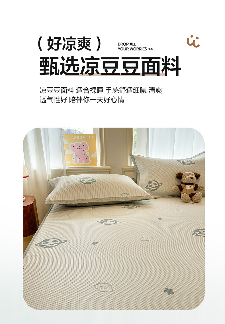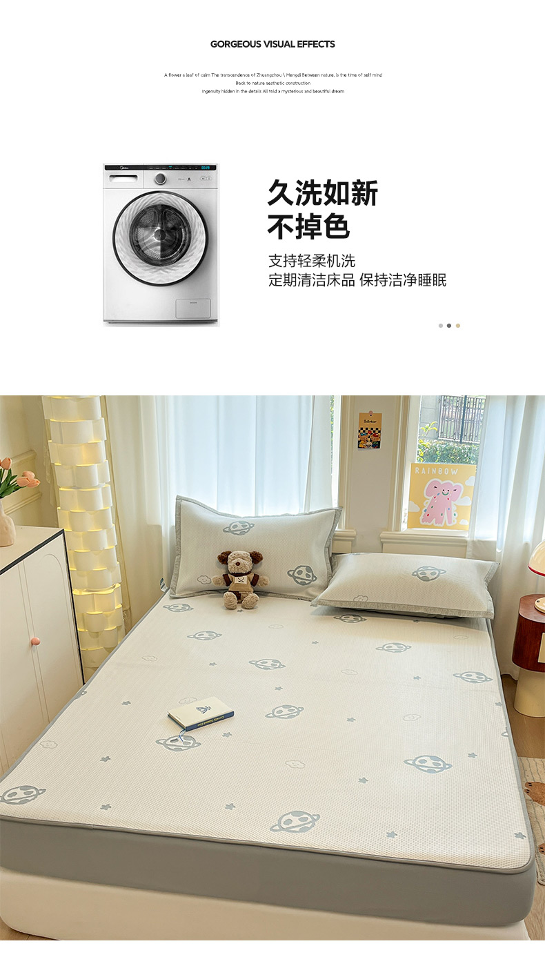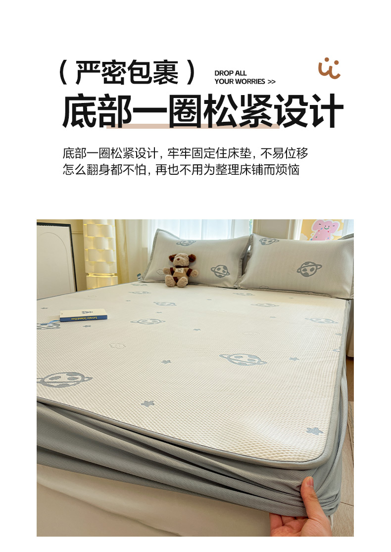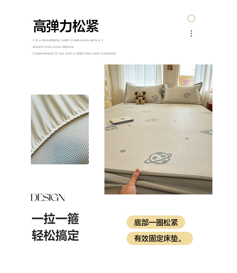 商品名称:雅居纺家纺 2026新款A类加厚三明治底提花小清新凉感席床笠款凉席席子 太空星球