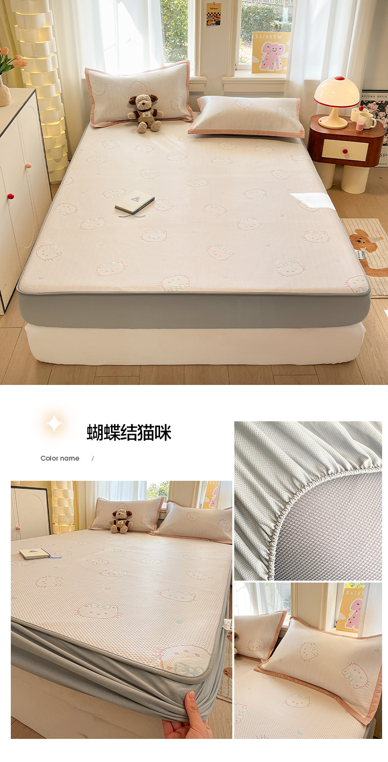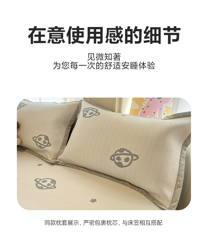 (总)雅居纺家纺 2026新款A类加厚三明治底提花小清新凉感席床笠款凉席席子,粉小兔,蝴蝶结猫咪,领结小猫,平安熊猫,山茶花,太空星球,晚安小狗,小熊熊,星星小熊,悠闲花园