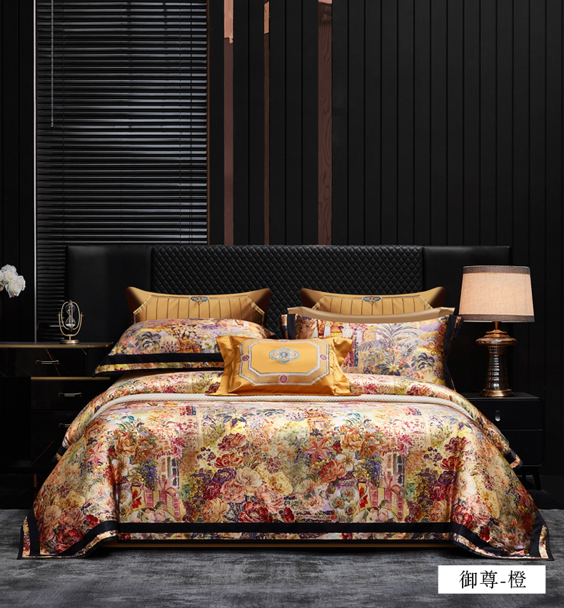 商品名称:至爱今生 2026新款数码印花长绒棉四件套-御尊 御尊-橙