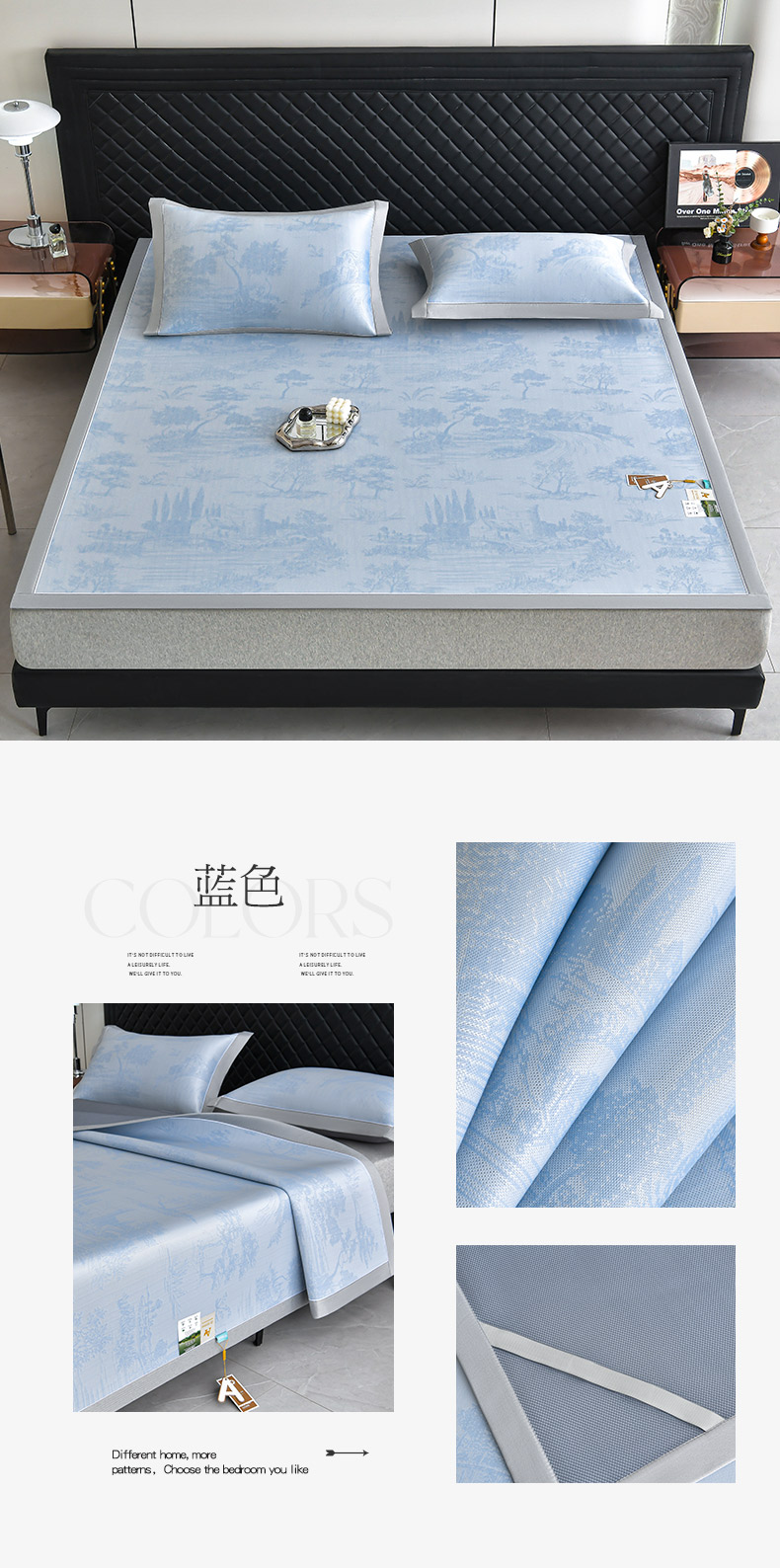 (总)2023新款超精密冰丝席-小斜纹系列-床笠款藤席凉席竹席,粉色,蓝色,绿色,银灰