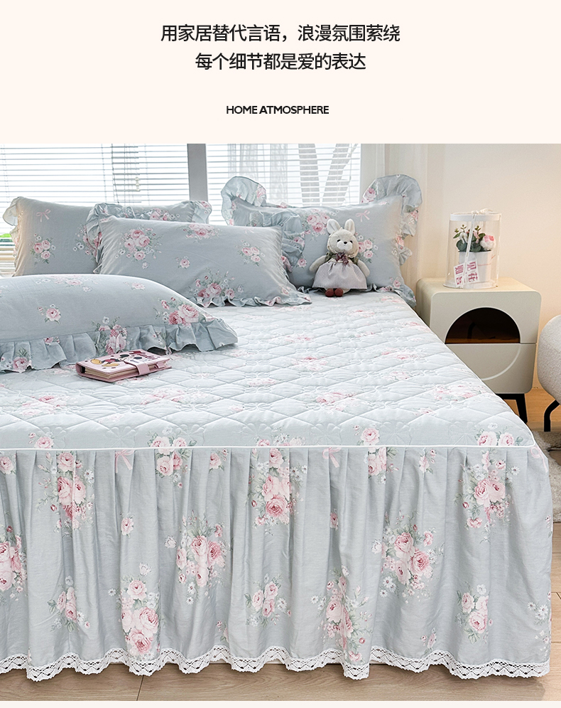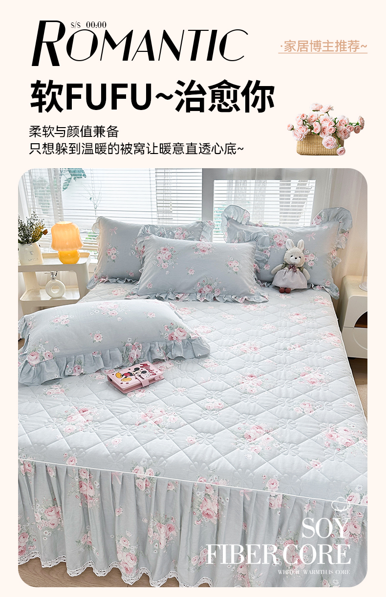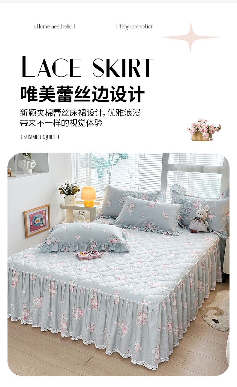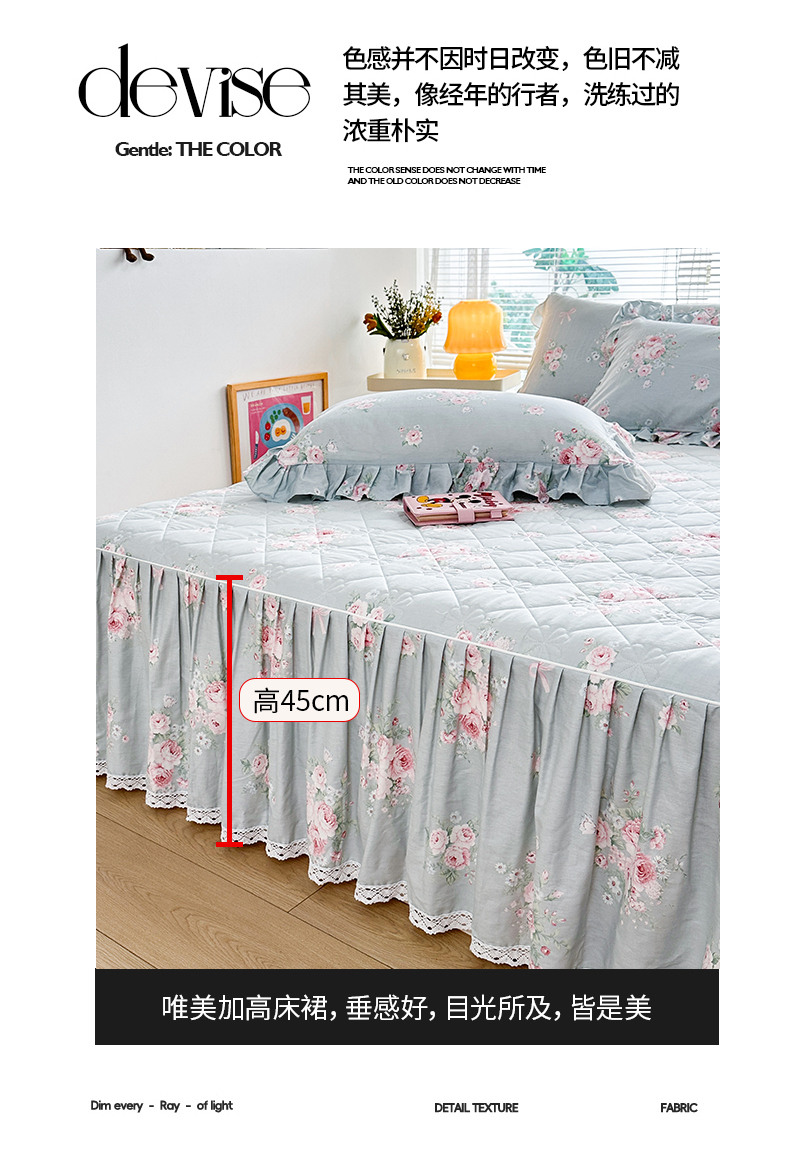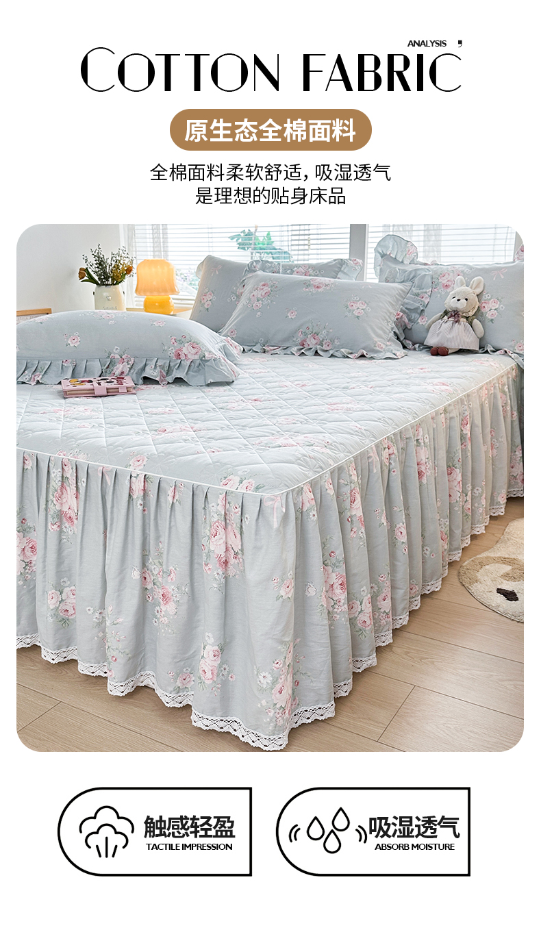忘忧草 2026春夏新款全棉纯棉夹棉印花床裙床裙单件 花疏影
