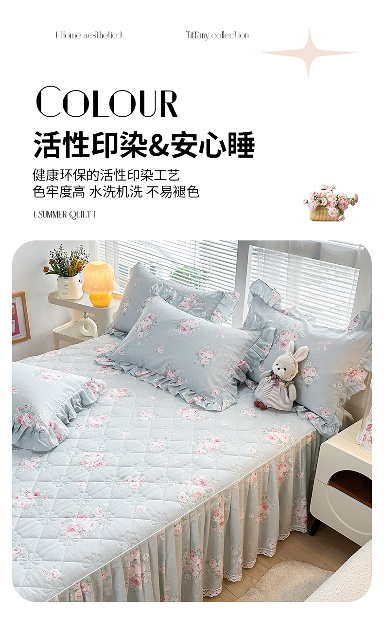 (总)忘忧草 2025亲肤水洗棉夹棉床裙--小清新系列,安娜花园,蝶恋花,蝴蝶结,郁金香,茶艺师,陌上花开,心动兔兔