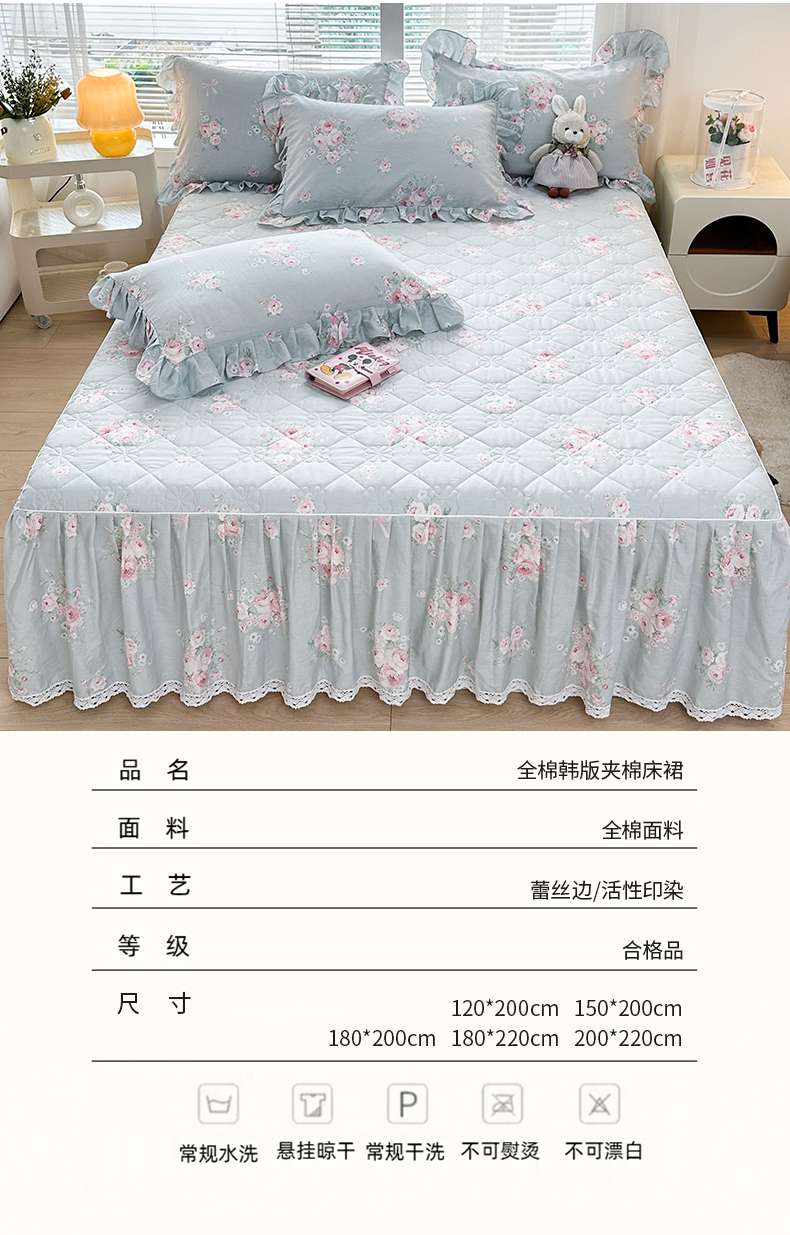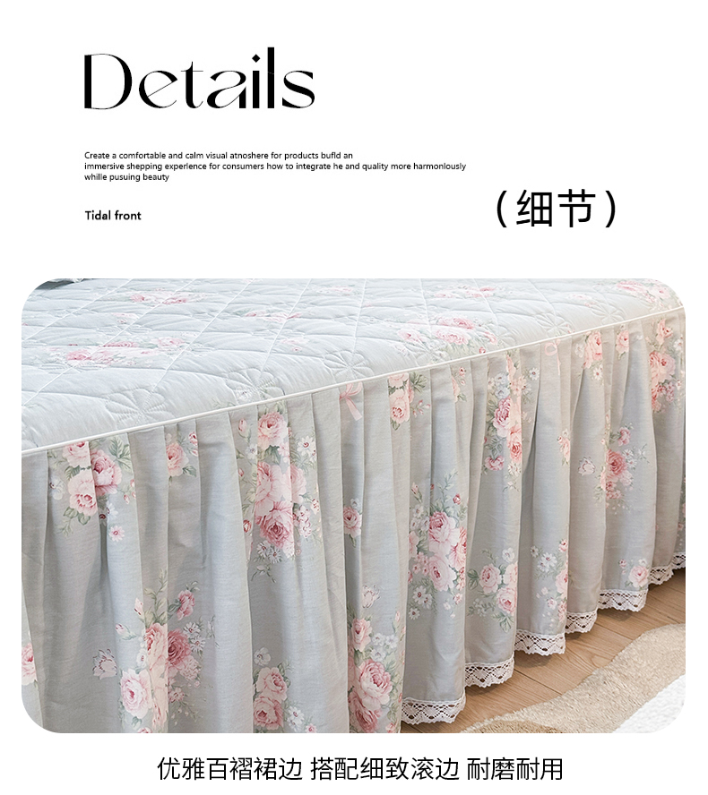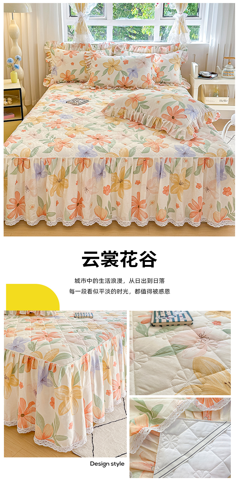 商品名称:忘忧草 2026春夏新款全棉纯棉夹棉印花床裙床裙单件 花疏影