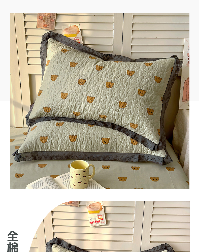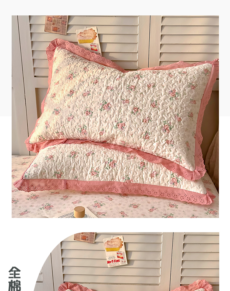 百寐 2026吸汗防油全棉三层夹棉花边信封加大50*80枕套48*74/40*60枕芯 夹棉-花季