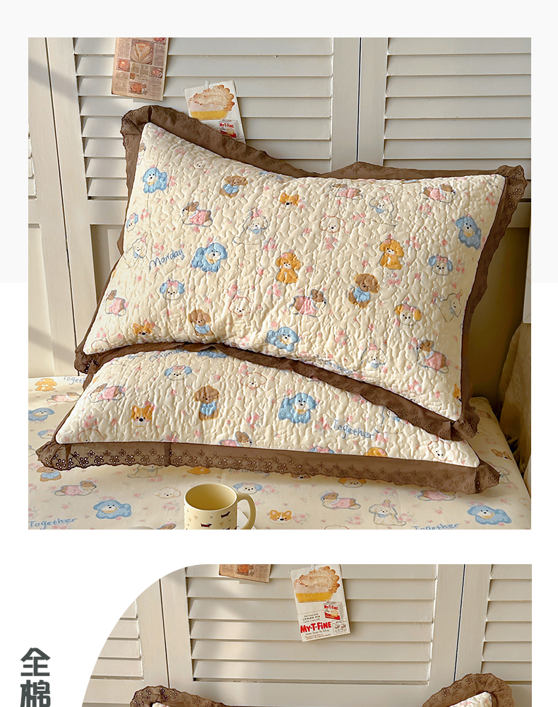 百寐 2023全棉夹棉雪纺花边枕套加厚加大吸汗立体枕芯套 童话镇,童话镇