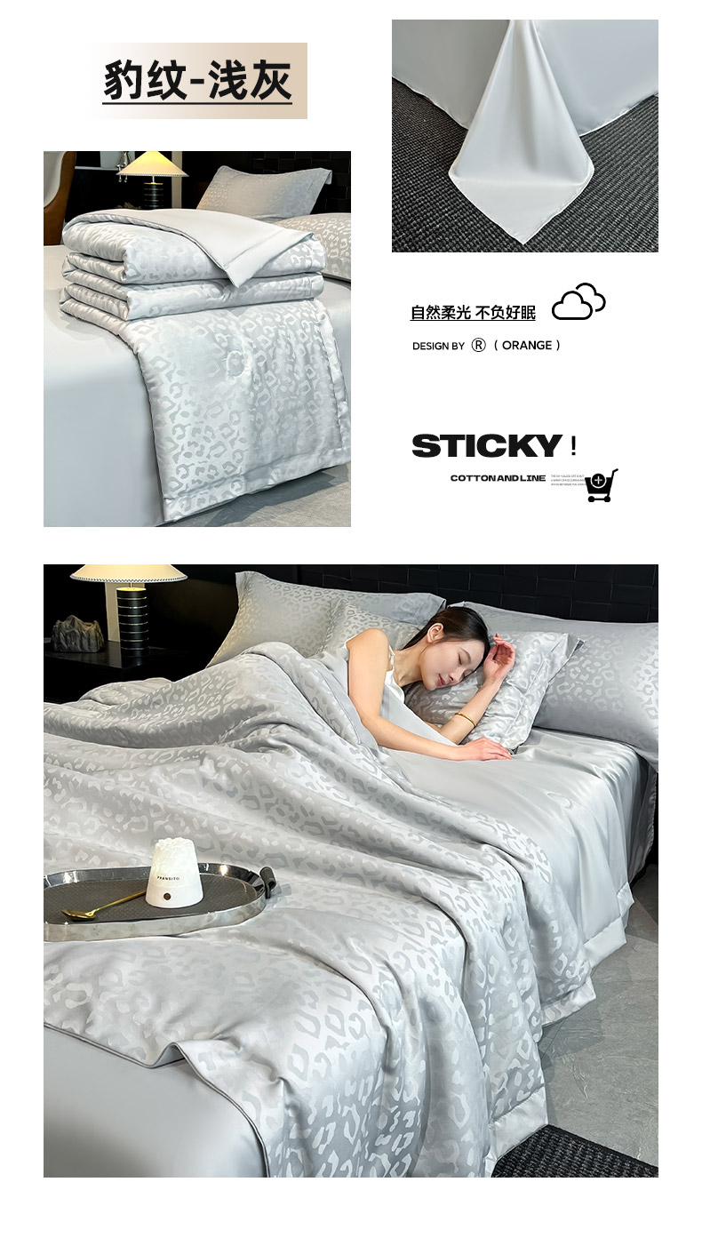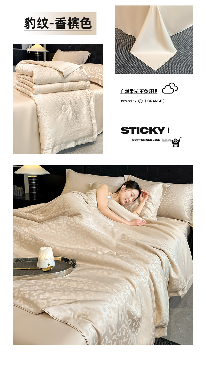 商品名称:(总)金阳光家纺 2026新款A类水洗真丝天丝提花高奢豹纹系列夏被夏凉被空调被夏被四件套