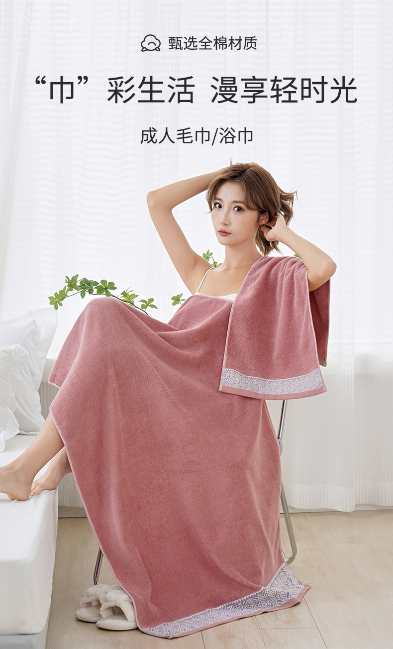 当前位置: 91家纺网 > 商品网购 > 居家日用 > 毛巾/浴巾/浴袍 > 浴巾 > 朴尔家纺-毛巾被 2026新款全棉纯棉32股弱捻浮雕织花加厚毛巾浴巾组合 浴巾-浮雕织花-暖粉 浴巾70x140cm/条