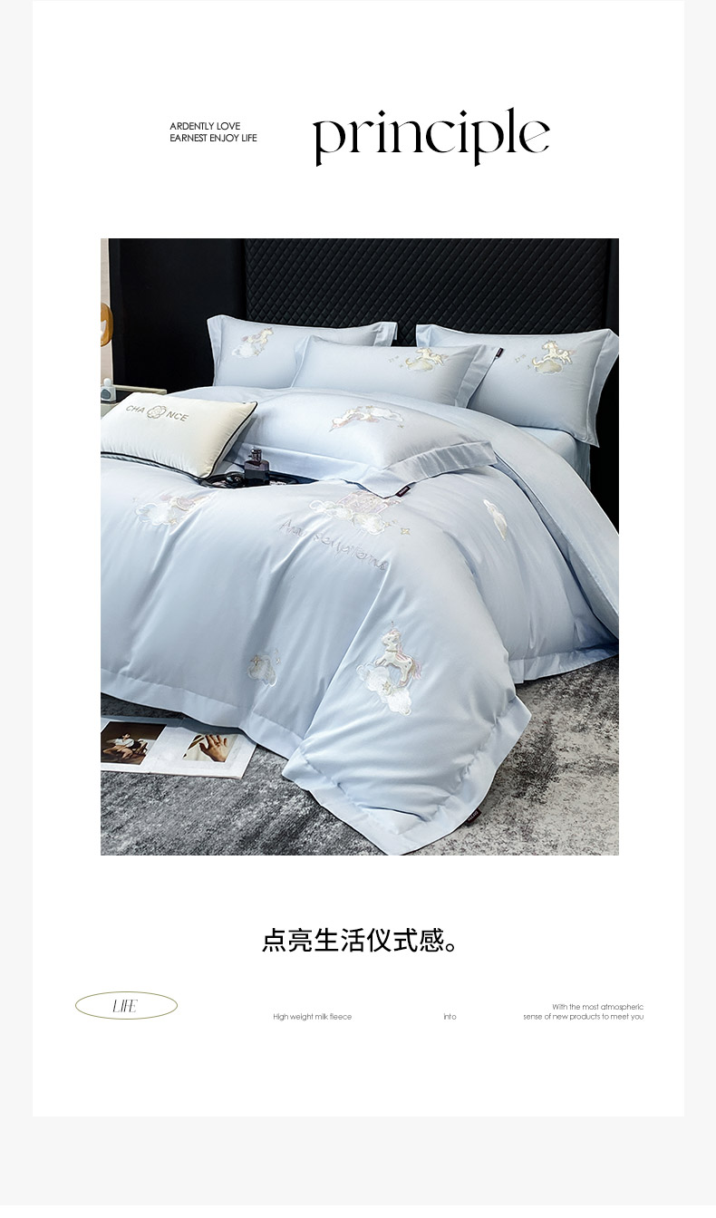 当前位置: 91家纺网 > 商品网购 > 床品套件 > 四件套 > 长绒棉四件套 > 春夏新品A类长绒棉纯棉四件套100全棉重工刺绣被套床单床笠纯色高端轻奢床上用品 城堡小马-慕蓝
