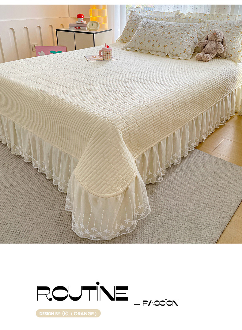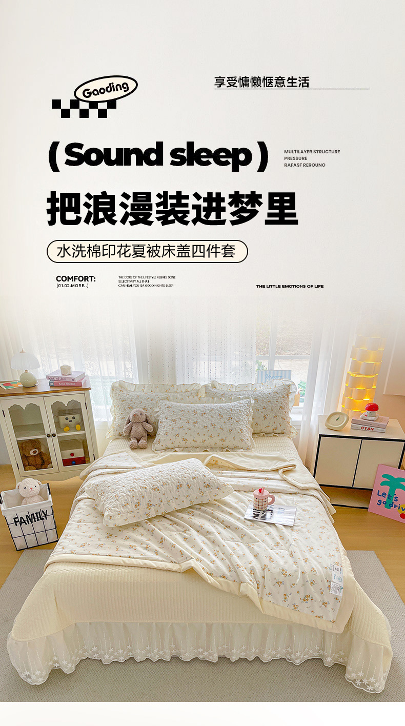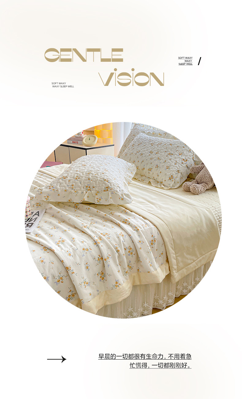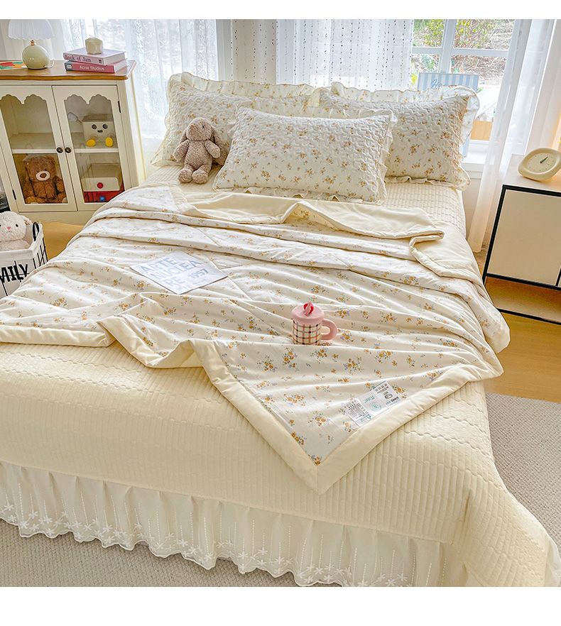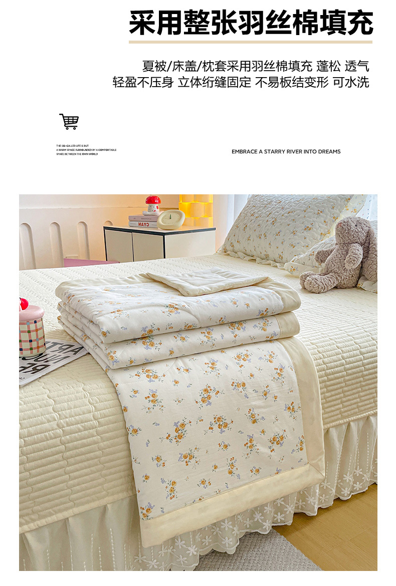 当前位置: 91家纺网 > 商品网购 > 床品套件 > 四件套 > 其它四件套 > 艺慕家纺 2026新款直播热款古法仿棉AB版水洗棉印花双层蕾丝花边夏被床盖四件套 AB版-春日花语