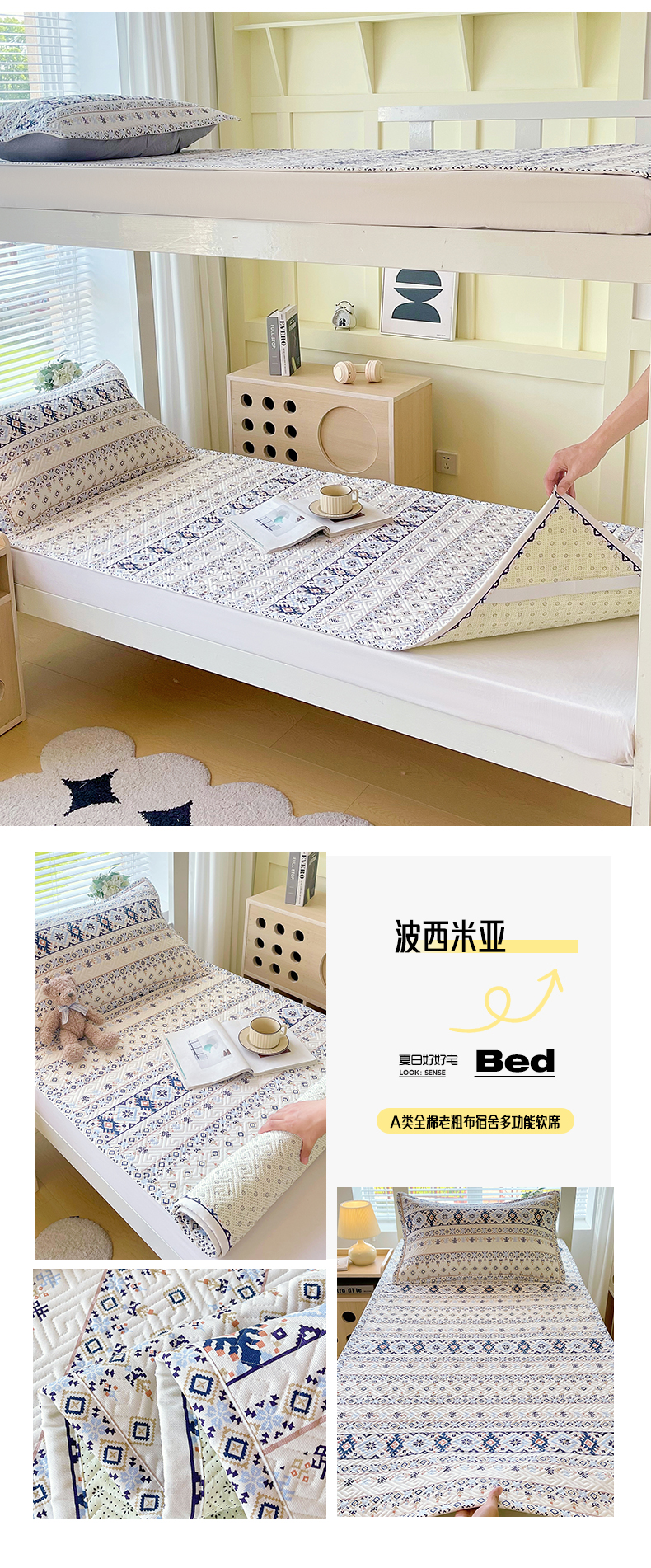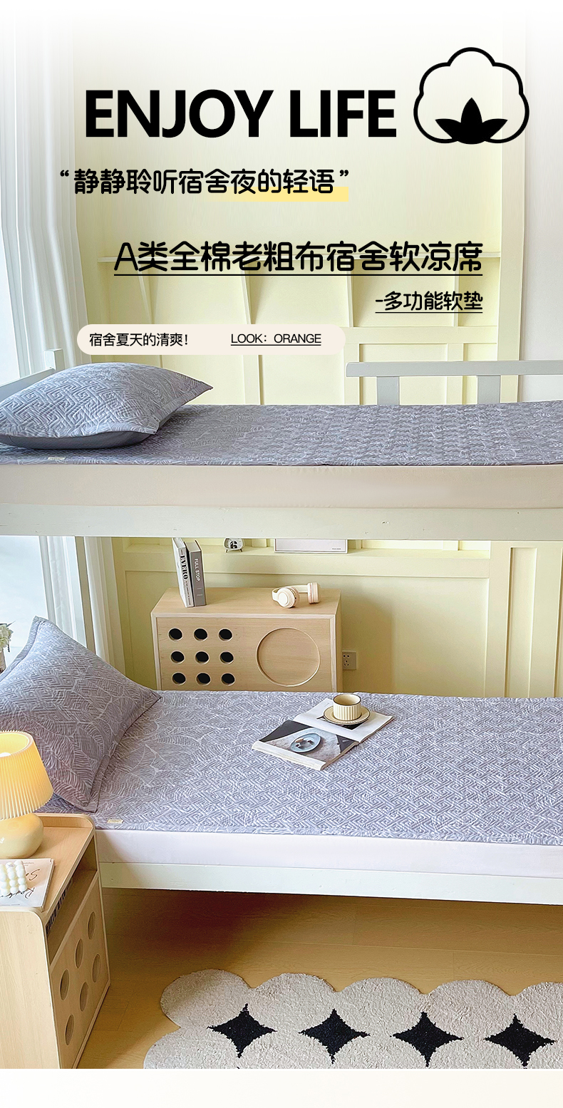 当前位置: 91家纺网 > 商品网购 > 床上用品 > 凉席 > 其他凉席 > 金鑫汇家纺 2026春夏新款学生床新花型老粗布床盖夹棉软凉席席子可以机洗 学生床-千叶