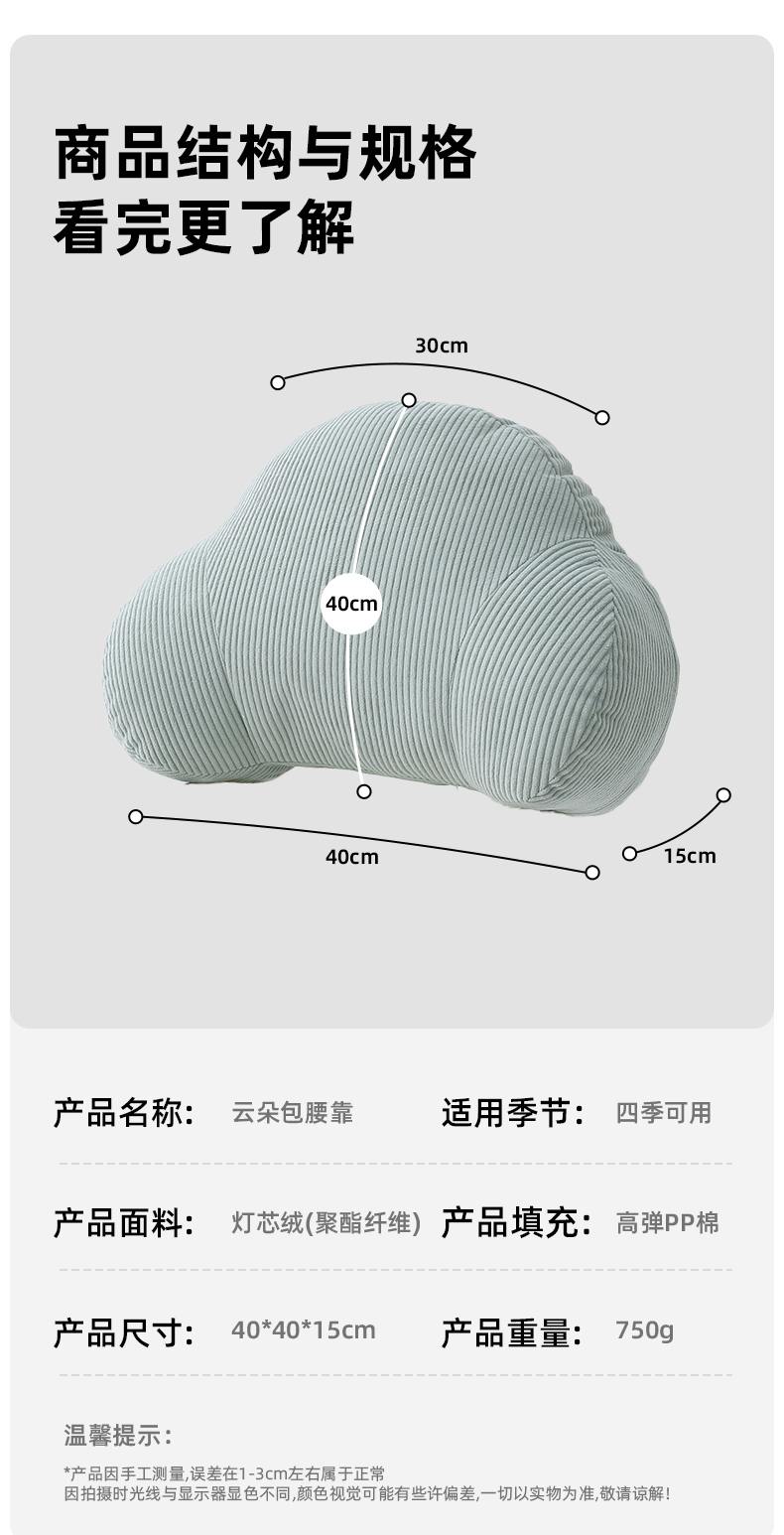 当前位置: 91家纺网 > 商品网购 > 居家布艺 > 坐垫/椅垫/沙发垫 > 椅垫 > 囍莱家纺 2026春夏新款灯芯绒云朵包腰靠(不供1688) 粉色