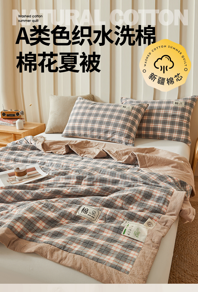 (总)招财星家纺 2026新款A类无印风100%新疆棉花夏被纯棉夏凉被空调被子薄被芯棉花被四件套,格韵-蓝灰,格雅-灰,格雅-绿,格韵-粉,格韵-粉灰,格韵-蓝粉,果绿色,海蓝小格,简兮格-蓝,蓝黄格,蓝小格,绿小格,米小格,清新蓝,雾粉格,香妃粉,星辰灰,云朵白,组合图仅供展示不可下单