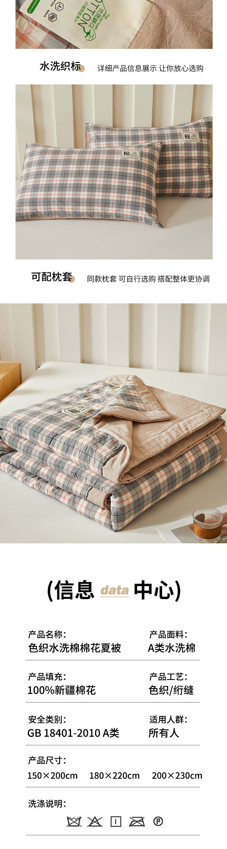 150x200cm单夏被+枕套一对