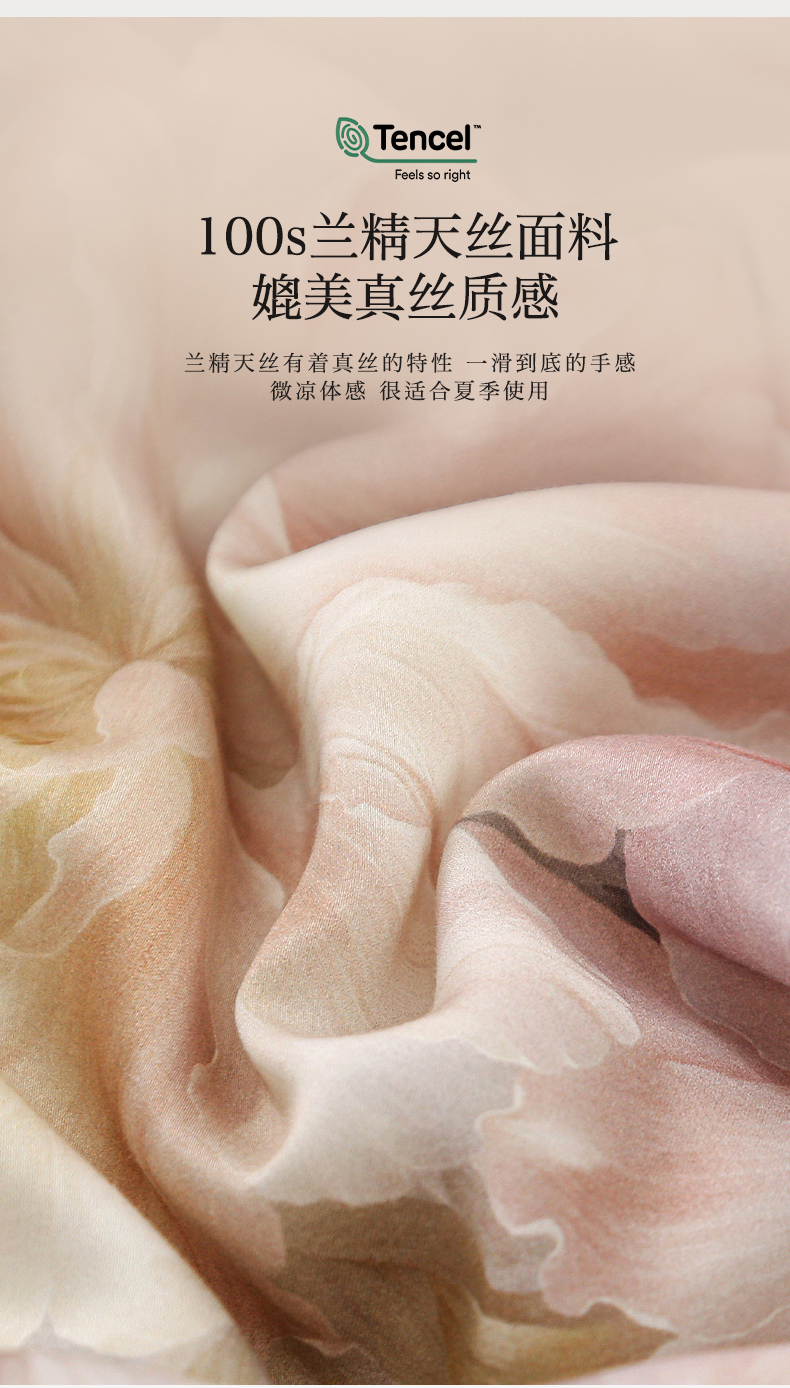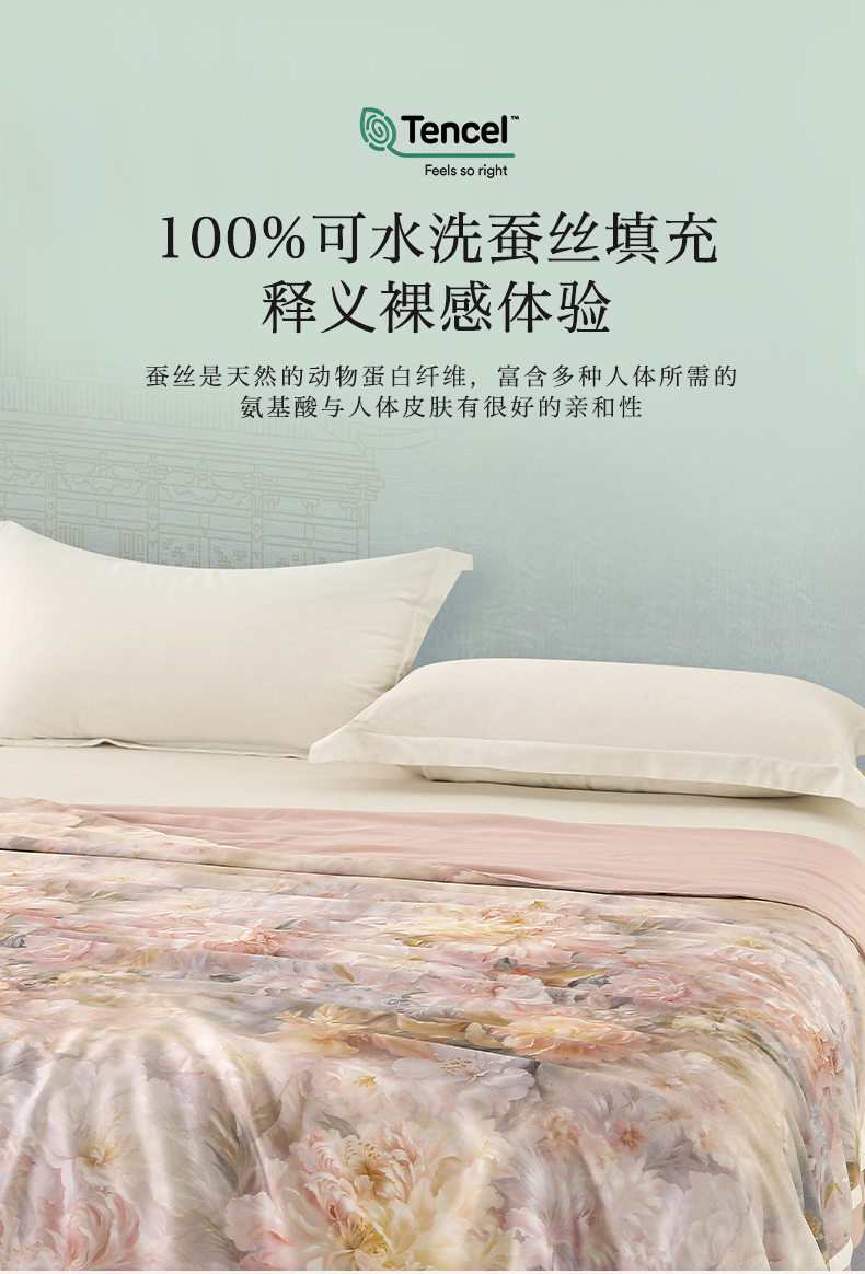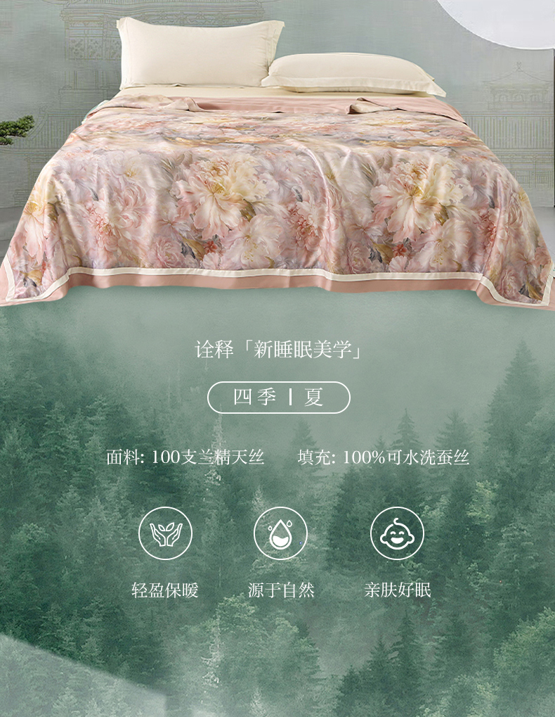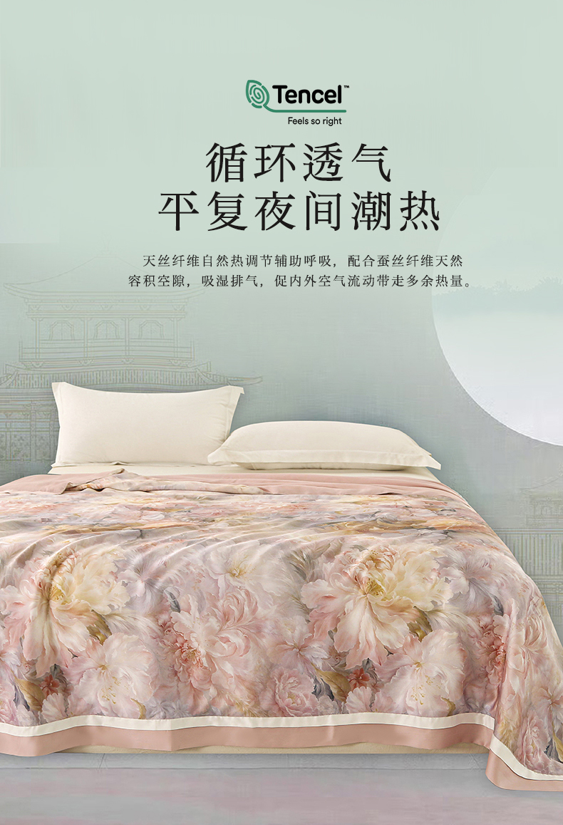 商品名称:薇玛仕 2026春夏新款100支兰精天丝数码印花可水洗蚕丝夏凉被空调被100蚕丝填充可过检测 蒂芙尼 粉