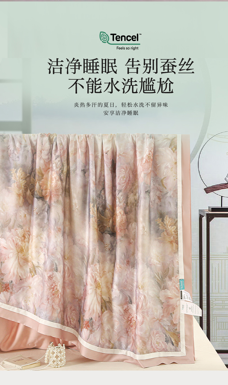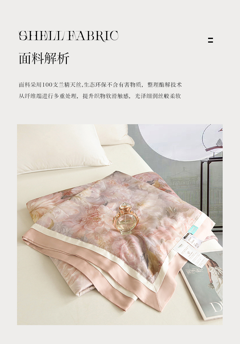 薇玛仕 2026春夏新款100支兰精天丝数码印花可水洗蚕丝夏凉被空调被100蚕丝填充可过检测 蒂芙尼 粉