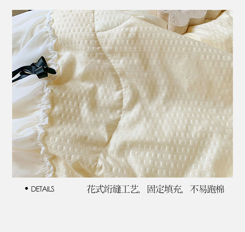 商品名称:吾欢心 2026新款小香风可可系列双层花边夏被四件套被子被芯 可可奶昔粉