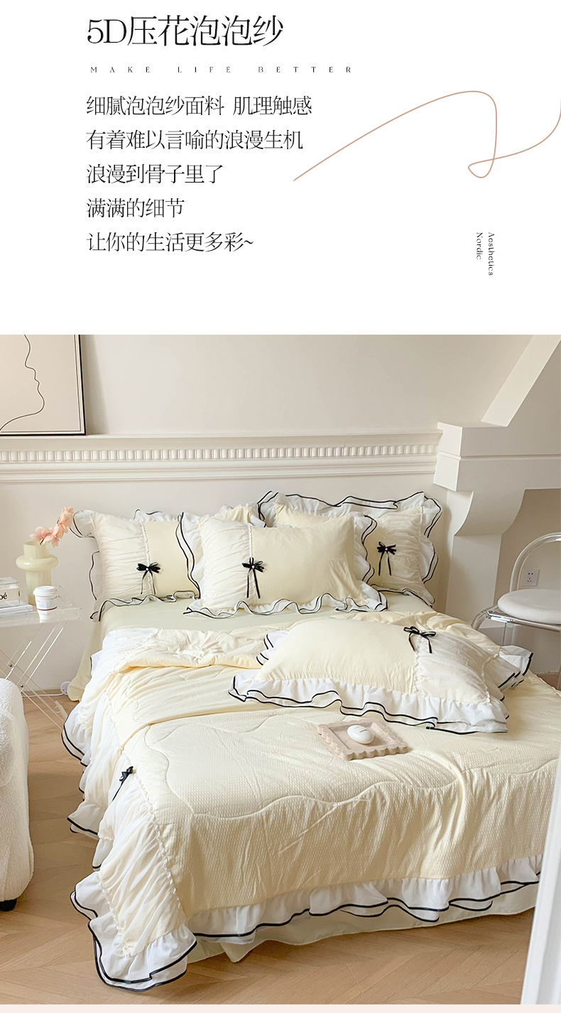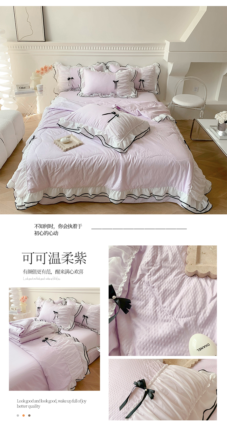 (总)吾欢心 2026新款小香风可可系列双层花边床盖款夏被四件套被子被芯,可可奶茶绿,可可奶昔粉,可可柠檬黄,可可温柔紫,可可樱桃粉