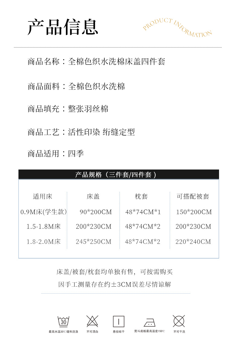 90x200cm单床盖+枕套一对