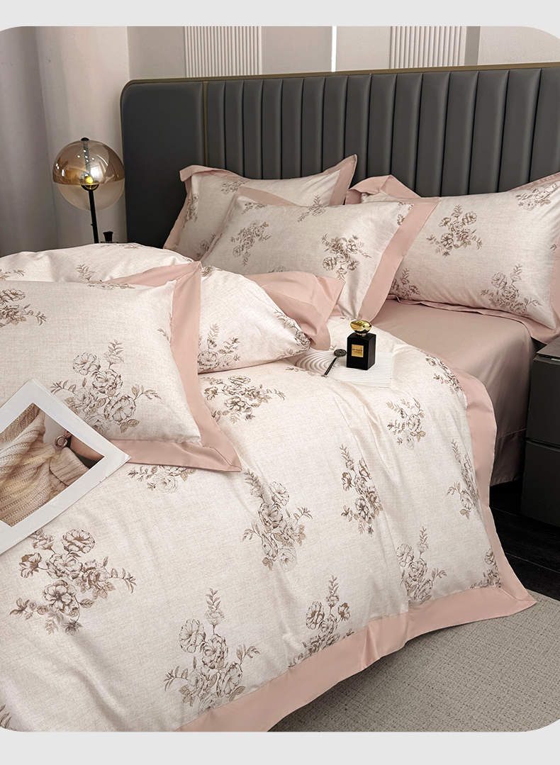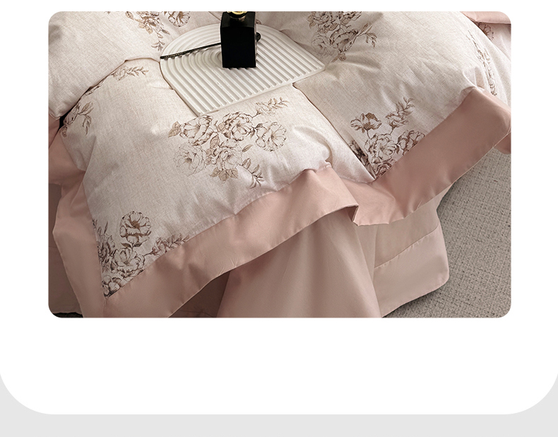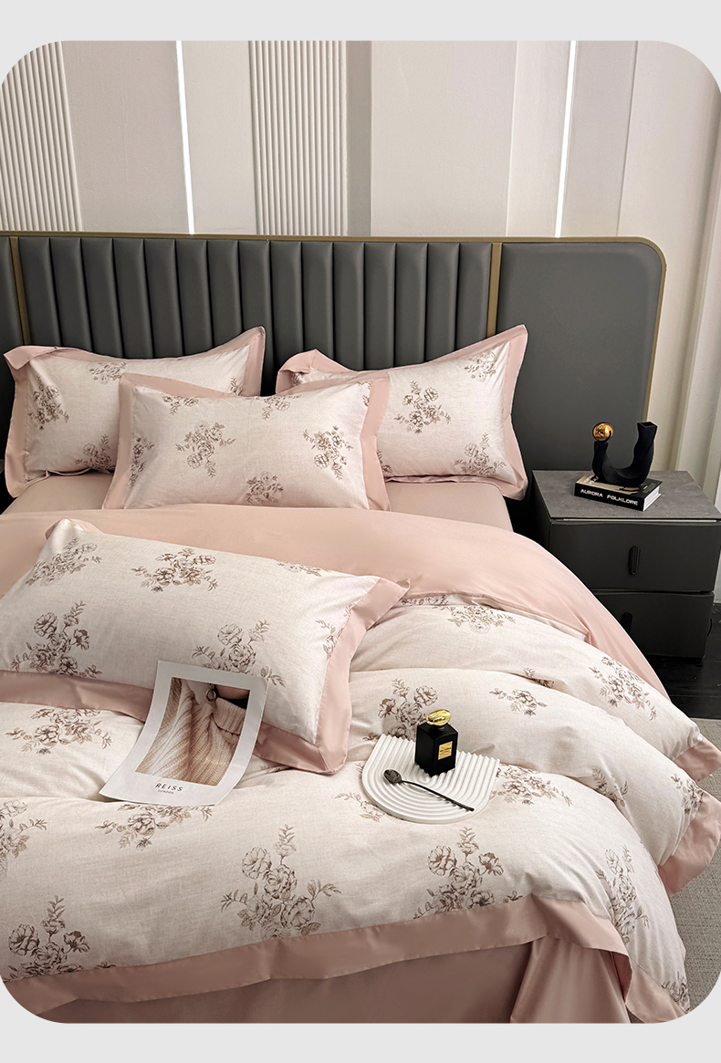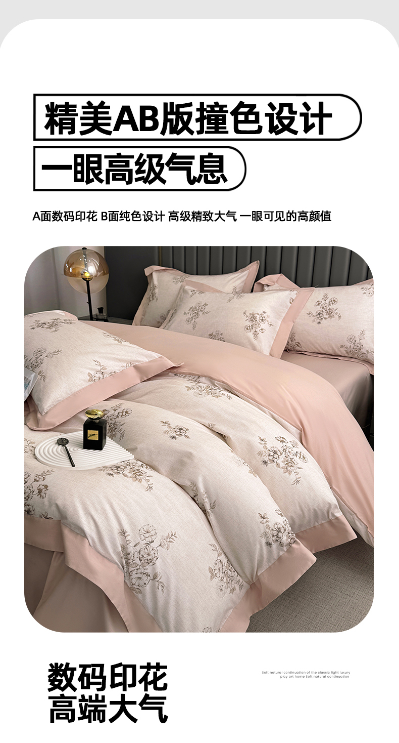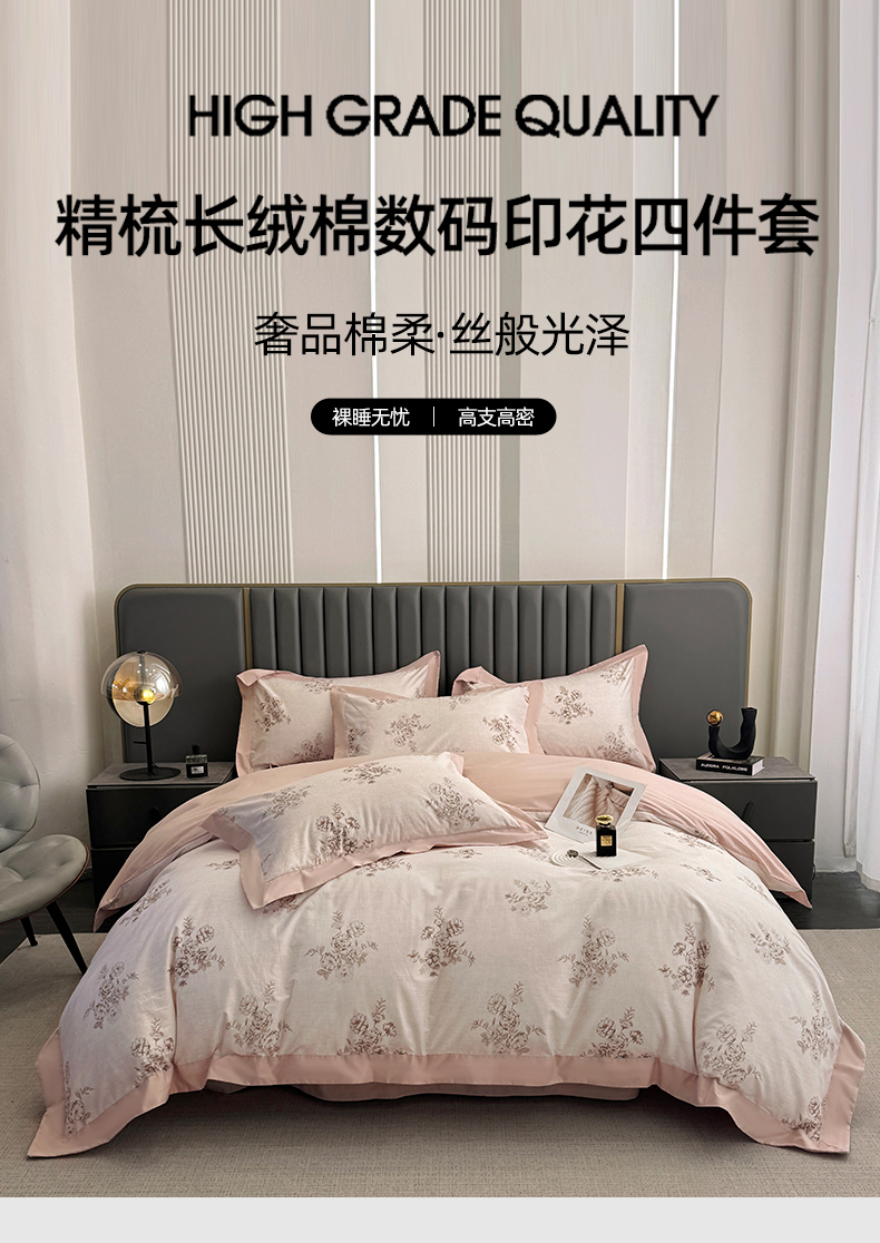 乐蔻家纺 2026新款宽边数码精梳长绒棉纯棉四件套 舒言 粉