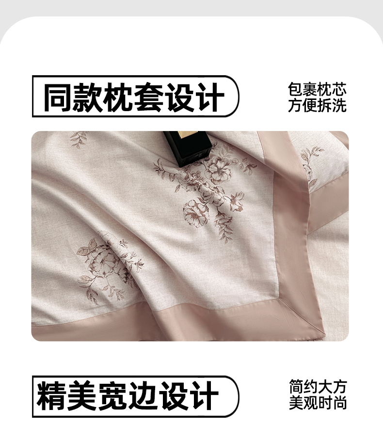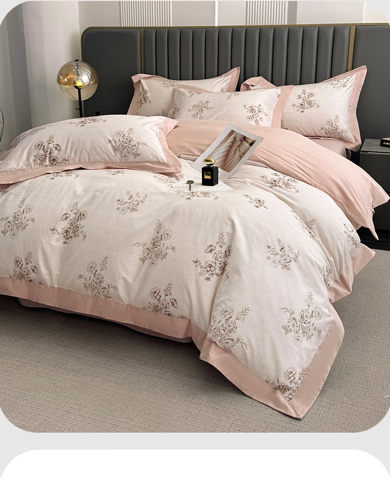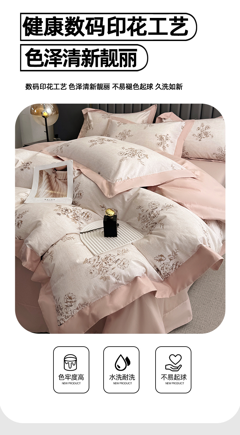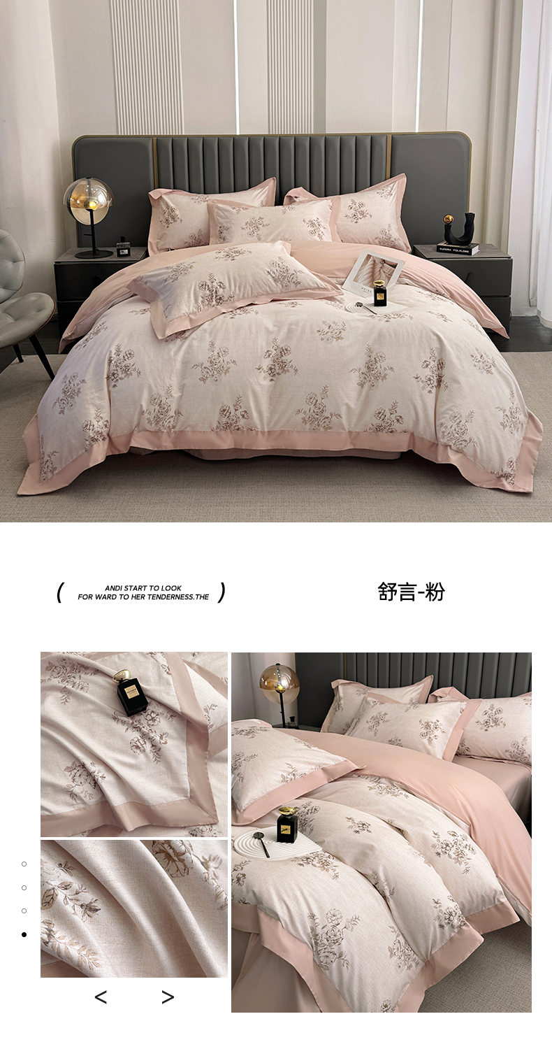 商品名称:乐蔻家纺 2026新款宽边数码精梳长绒棉纯棉四件套 舒言 粉