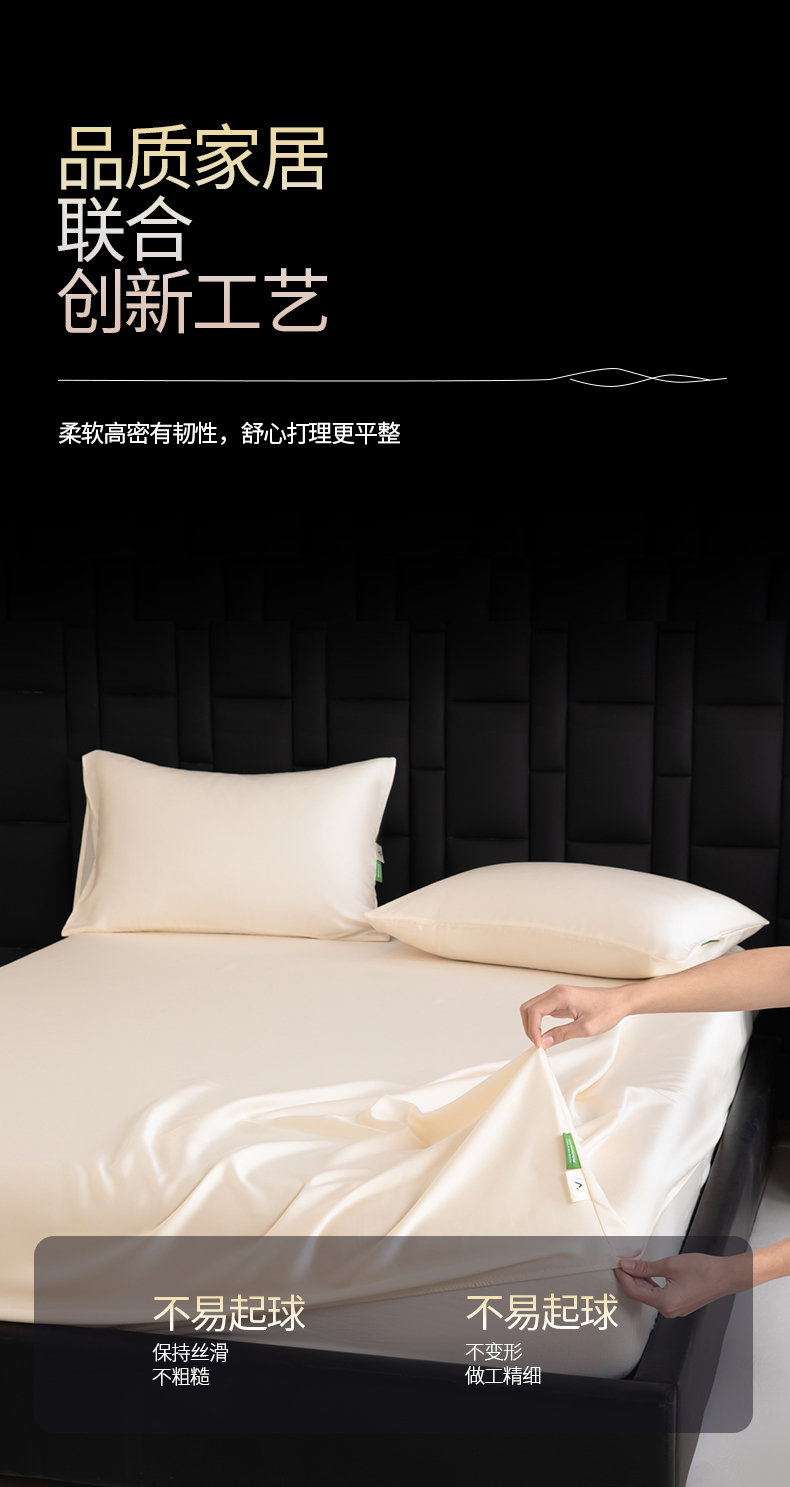 • 91家纺网 家纺一手货源 找家纺 眠博士 2026新款60S天丝莱赛尔纯色床笠-场景一 60S天丝床笠-云朵白