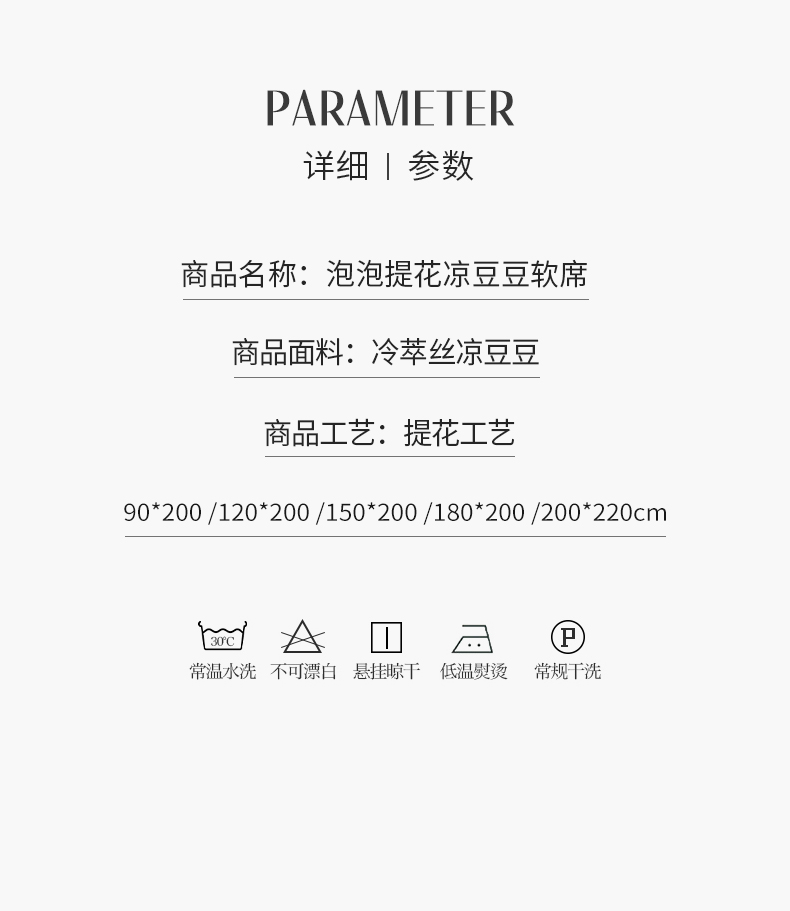 商品名称:(总)莱米家纺 2026春夏新款全PE双面泡泡提花复合豆豆席凉席席子