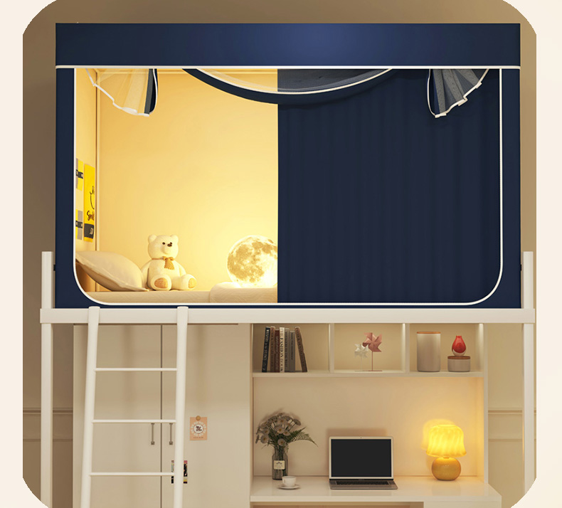 • 91家纺网 家纺一手货源 找家纺 宅部落 2026新款宅部落学生床帘宿舍上下铺印花无涂层强遮光学生蚊帐 纯色-藏蓝色