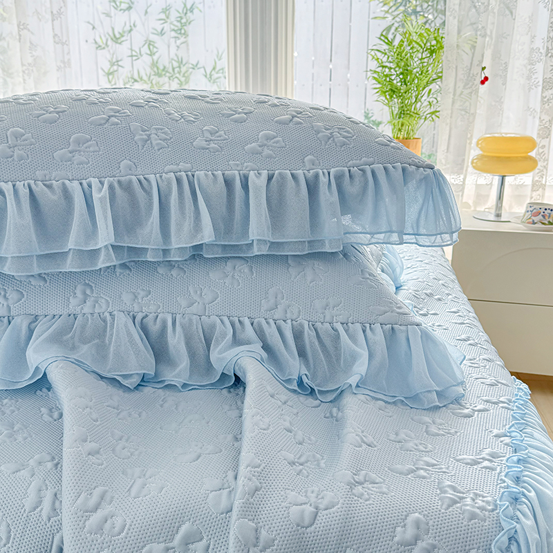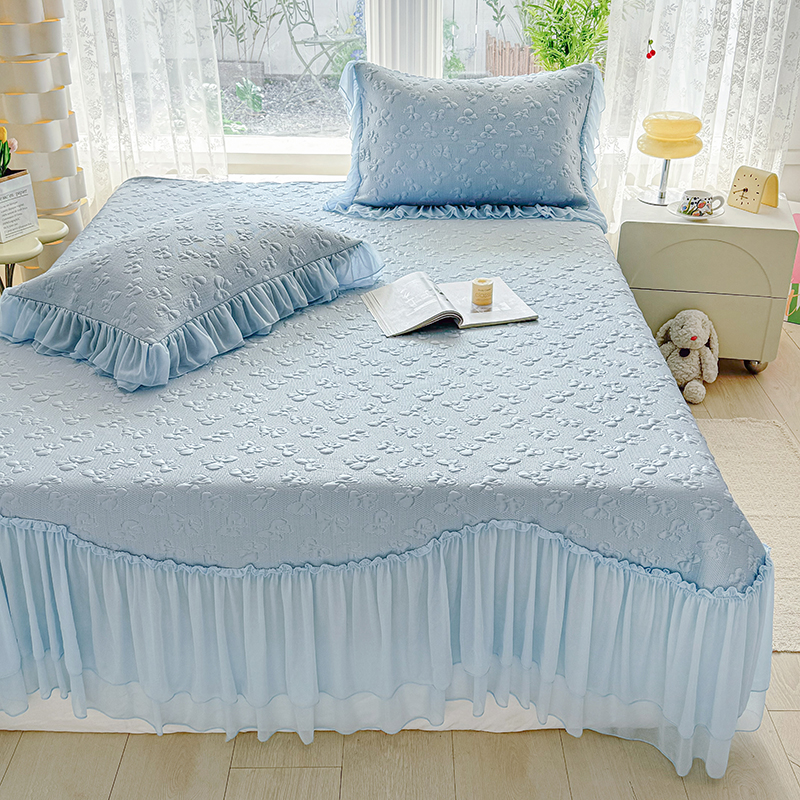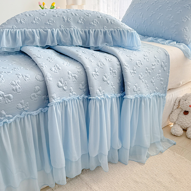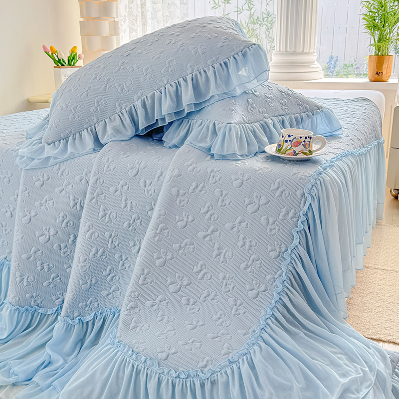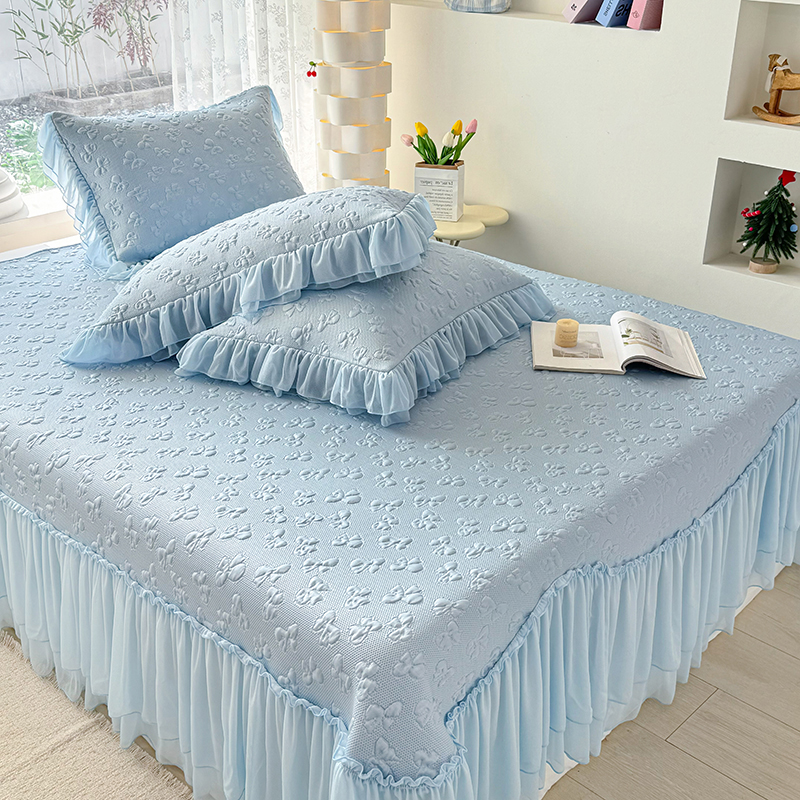 (总)红夫人 2026新款凉豆豆PE高分子凉感绣花弯边床裙凉席三件套--安然影(三层花边+三明治复合+精美手提包),安然影茶绿,安然影蓝色,安然影浅粉,安然影紫色