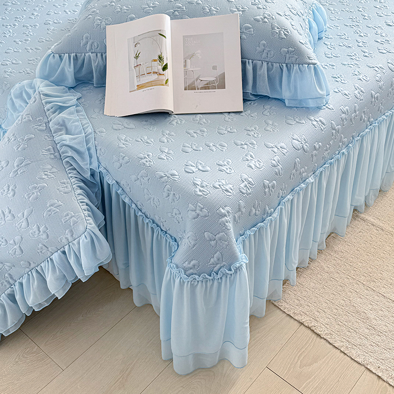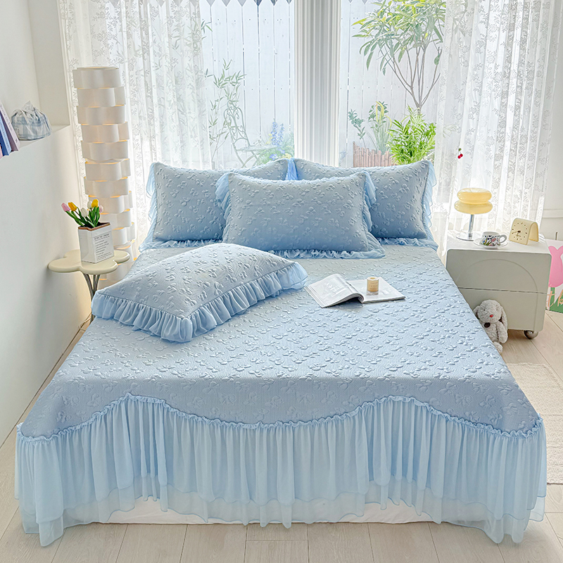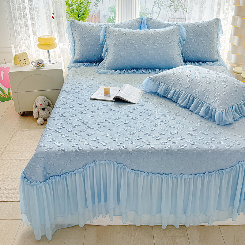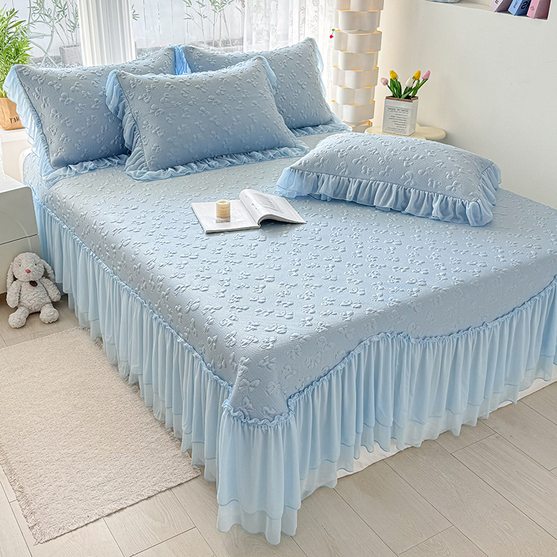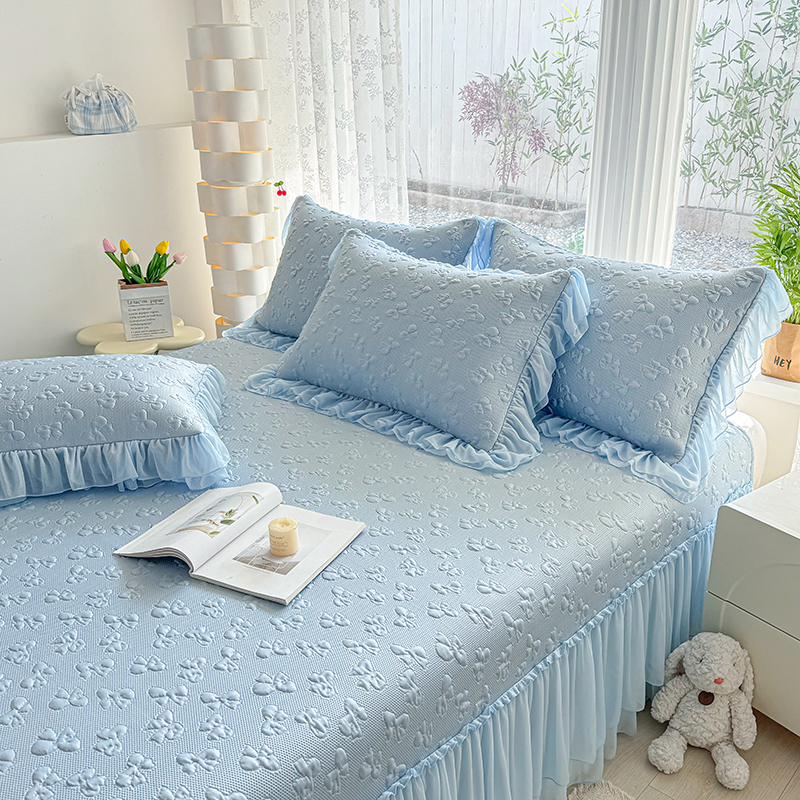 (总)红夫人 2026新款凉豆豆PE高分子凉感绣花弯边床裙凉席三件套--安然影(三层花边+三明治复合+精美手提包),安然影茶绿,安然影蓝色,安然影浅粉,安然影紫色