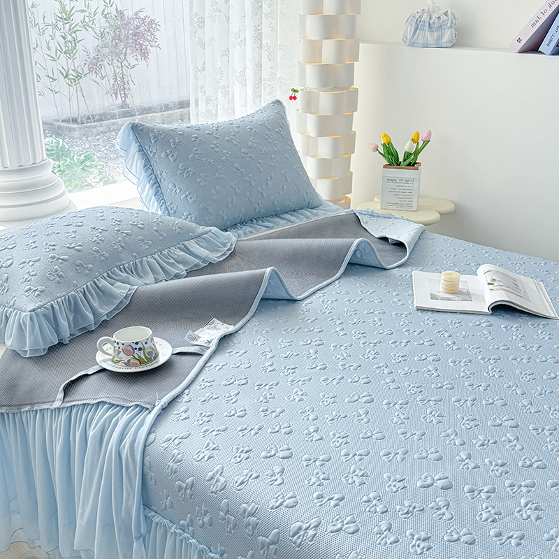 商品名称:红夫人 2026新款凉豆豆PE高分子凉感弯边床裙凉席三件套--小确幸(三明治复合+精美手提包) 小确幸蓝色