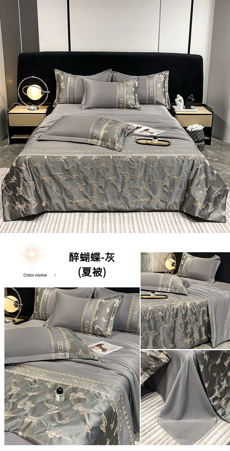 商品名称:子曰 2026新款浮雕水洗真丝夏被四件套 醉蝴蝶-灰