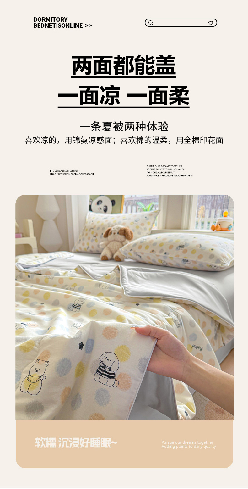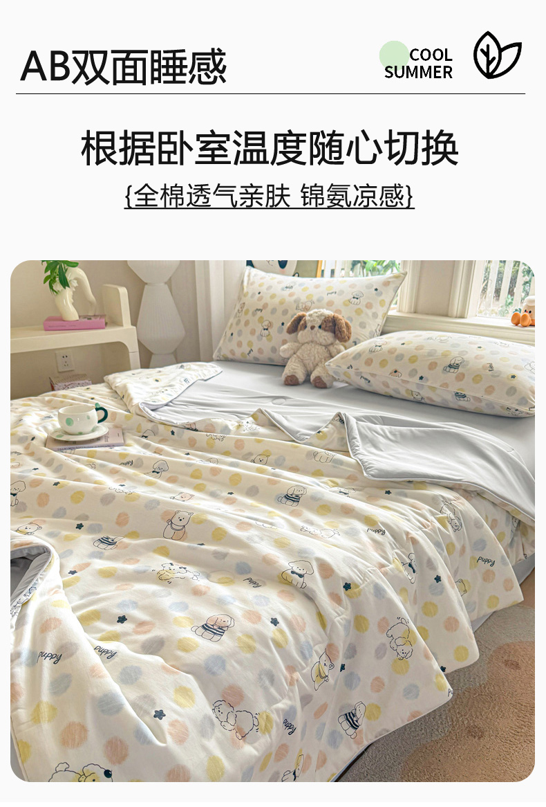 万盛家纺 2026新款全棉锦氨凉感夏被夏凉被空调被 顽皮狗