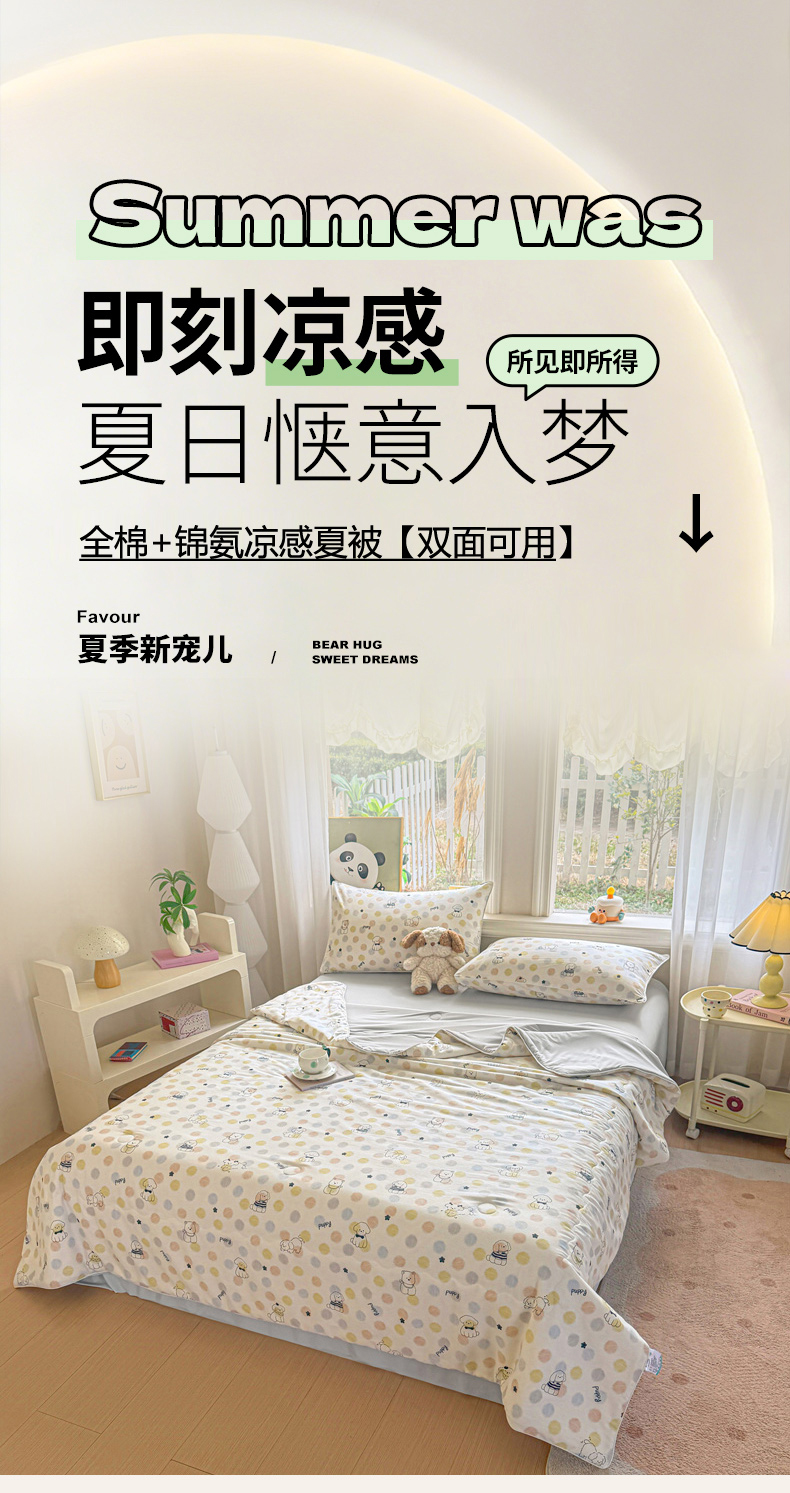 (总)万盛家纺 2026新款全棉锦氨凉感夏被夏凉被空调被,芬芳馥香,韩系小萌物,凯蒂甜品会,蓝沫,墨兰樱桃,木马心愿,顽皮狗,夏槿绿,小猫钓鱼,知夏