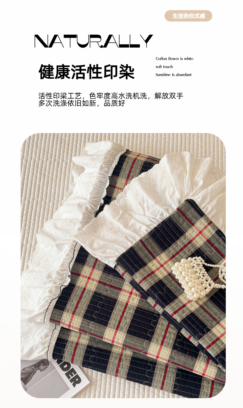 (总)沐辰 2026新款A类色织水洗棉花边款床盖,组合图仅供展示不可下单,橘色中格,洛可可红格,曼特宁-红,曼特宁-绿,小泡芙-兰,小泡芙-紫,英伦格韵