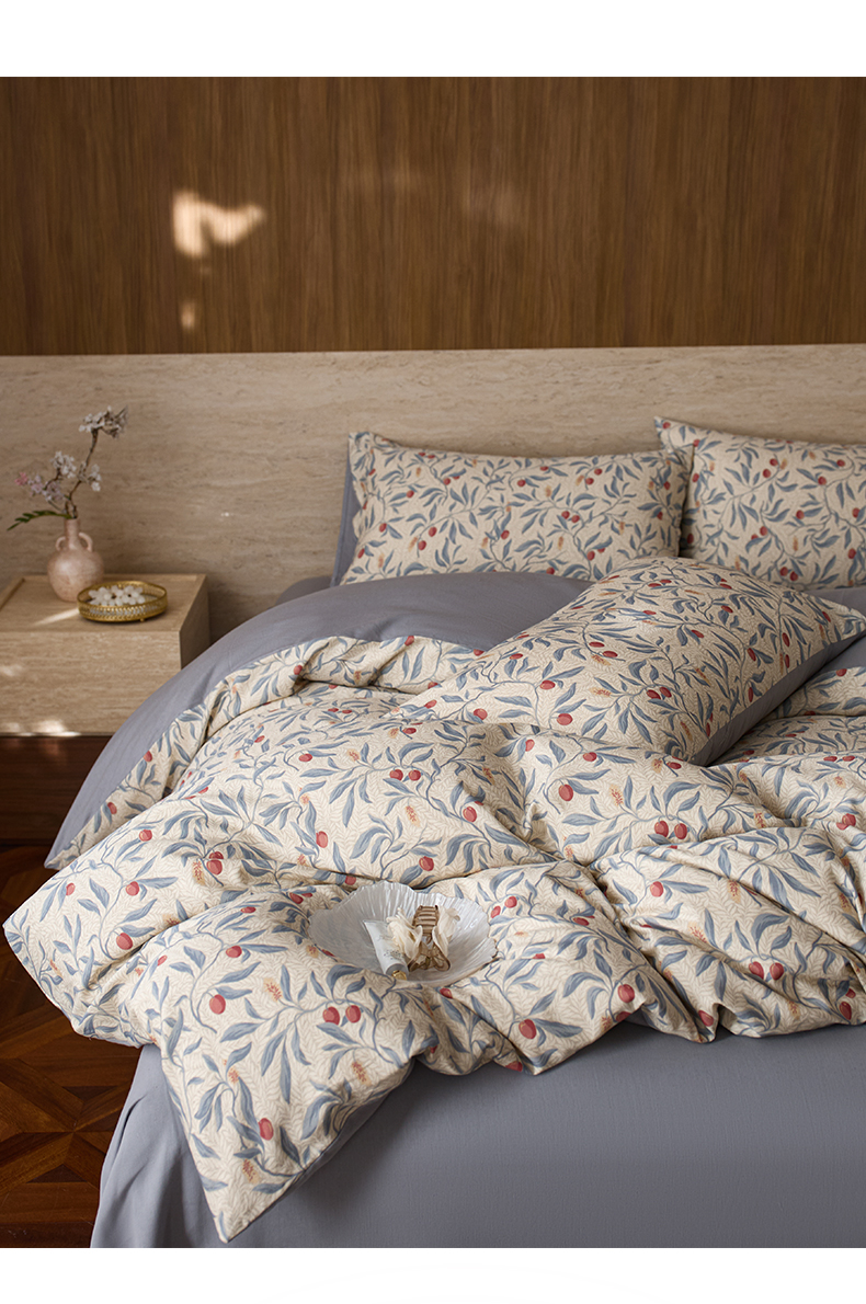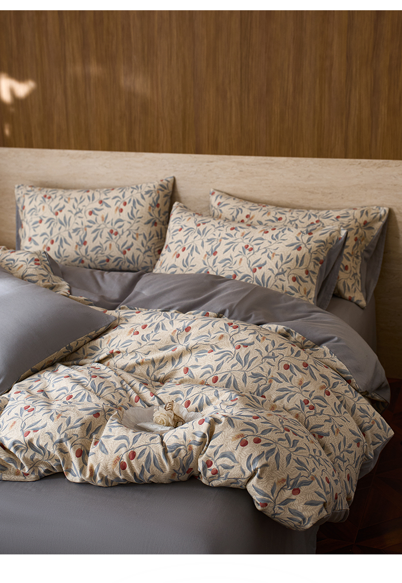(总)如一 2026新款A类复古全棉棉麻印花四件套,蝶影,果韵,漫野,青花,硕果,郁香,枝叶,庄园