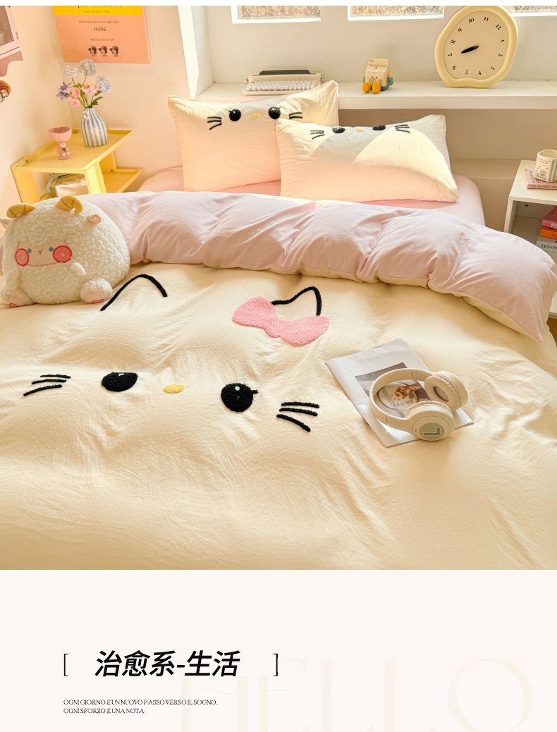 (总)雨帆家纺 2026新款云朵棉卡通毛巾绣四件套,草莓熊,奶油甜美猫,奶油尼尼,少女甜美猫,奶黄尼尼