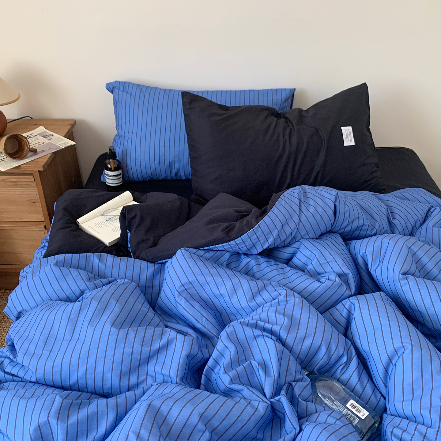 (总)桃喜 2026春夏全棉新品色织水洗棉条纹博主ins风四件套学生三件套(会员-5),薄荷芋泥,粉荔奶灰,海盐奶盖,红茶拿铁,蓝调可可,夜的留白