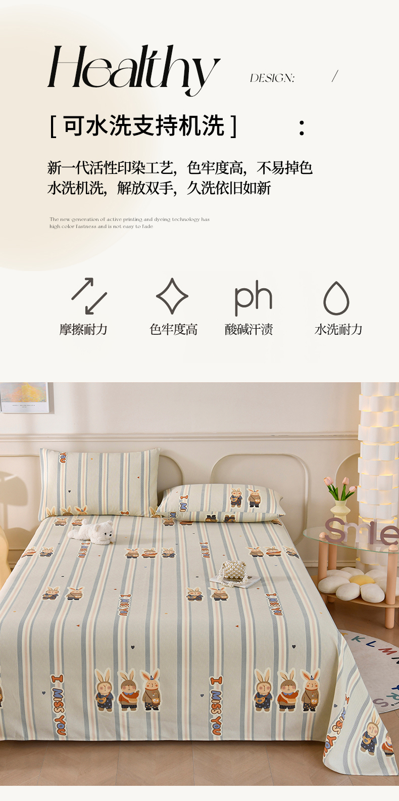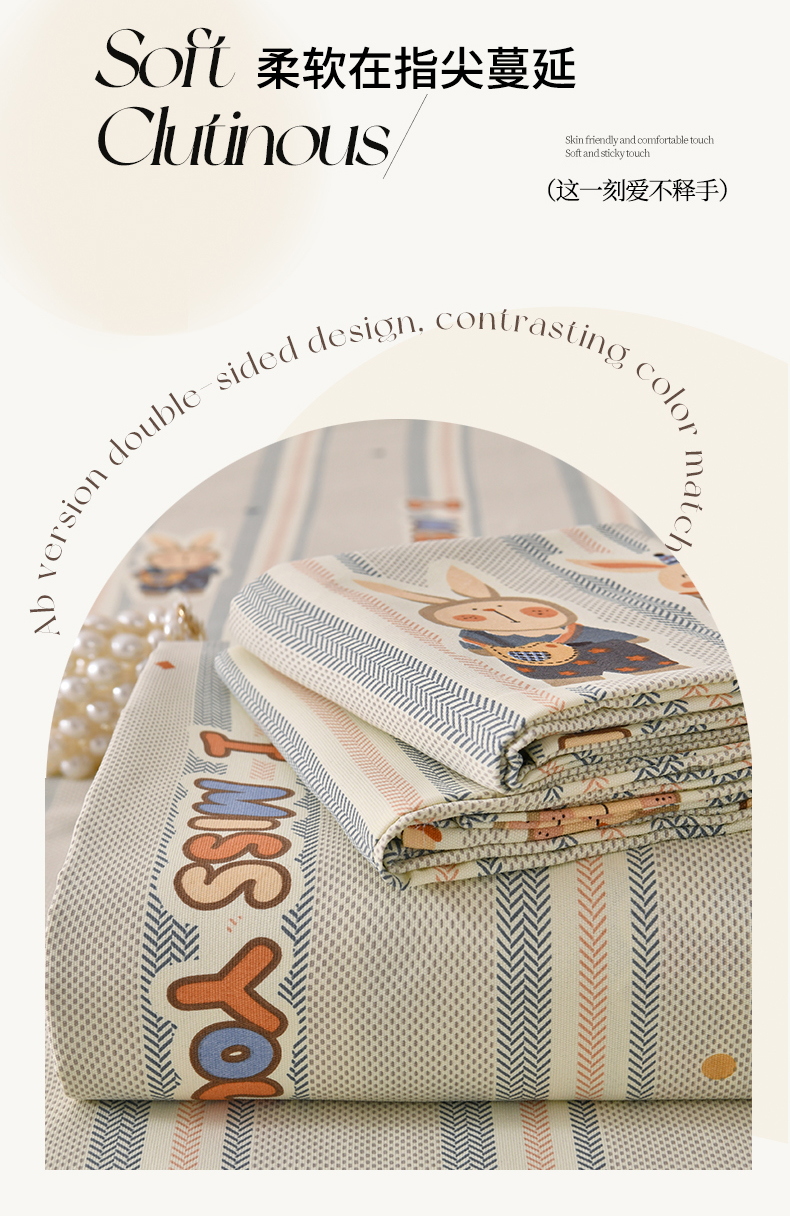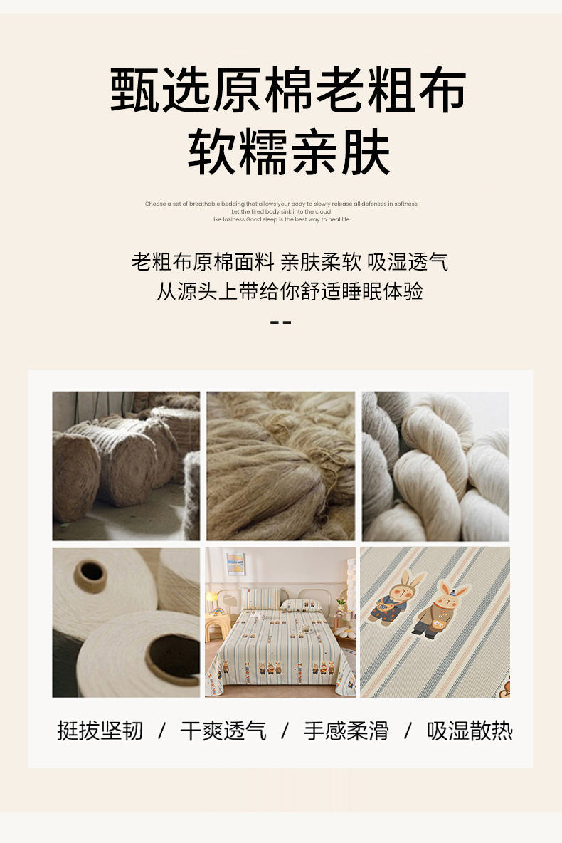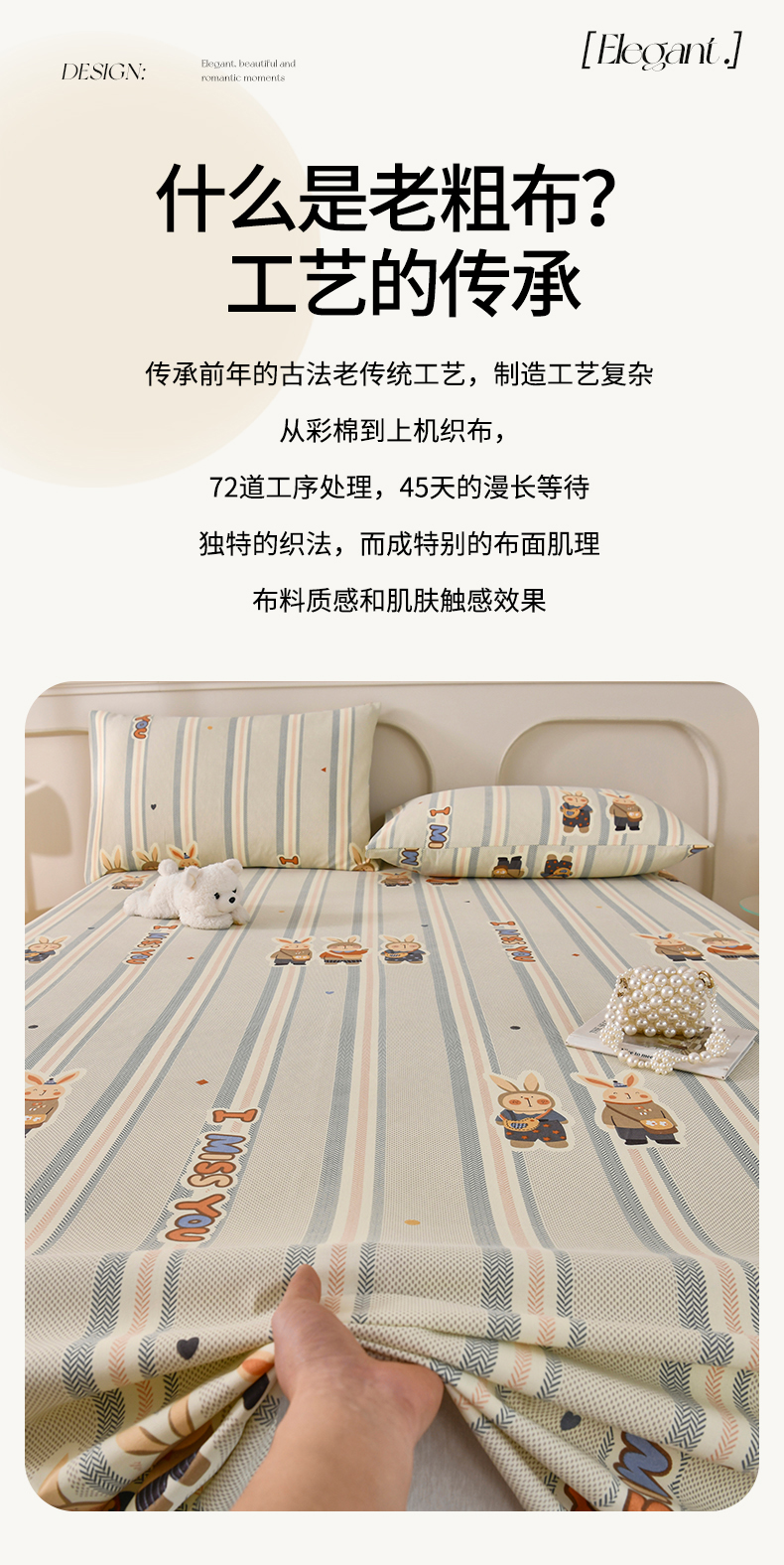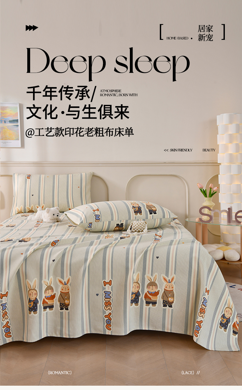 • 91家纺网 家纺一手货源 找家纺 悠米悠家 2026新款工艺款印花老粗布床单单品床单床单单件凉席席子 青禾兔趣条
