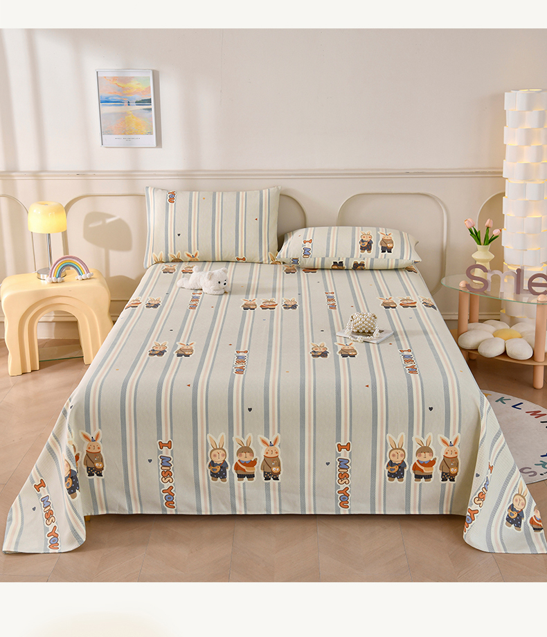 悠米悠家 2026新款工艺款印花老粗布床单单品床单床单单件凉席席子 青禾兔趣条