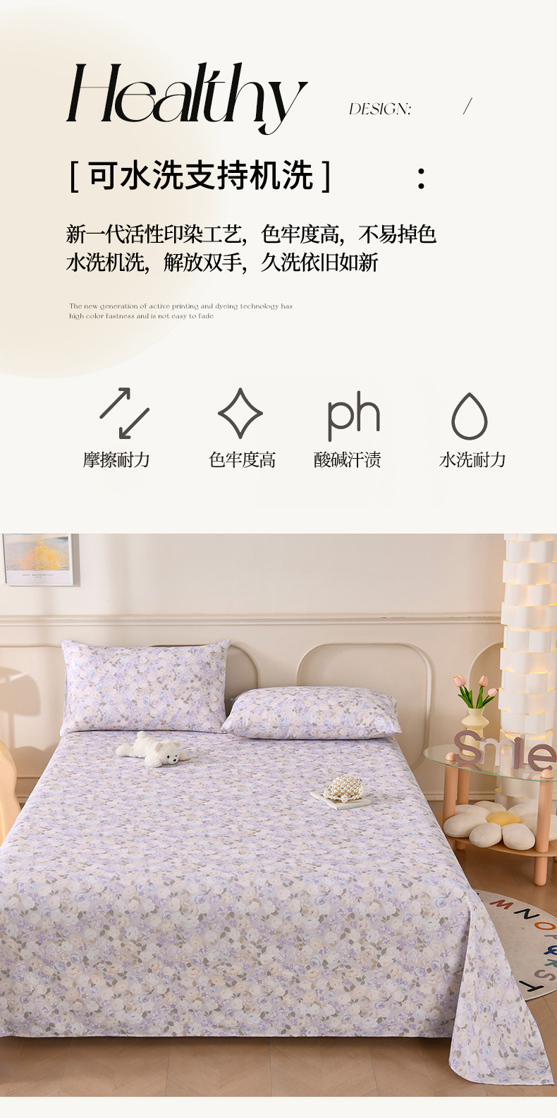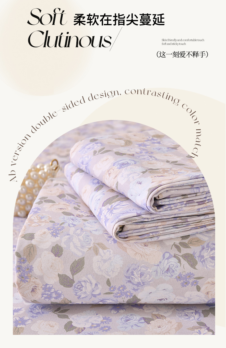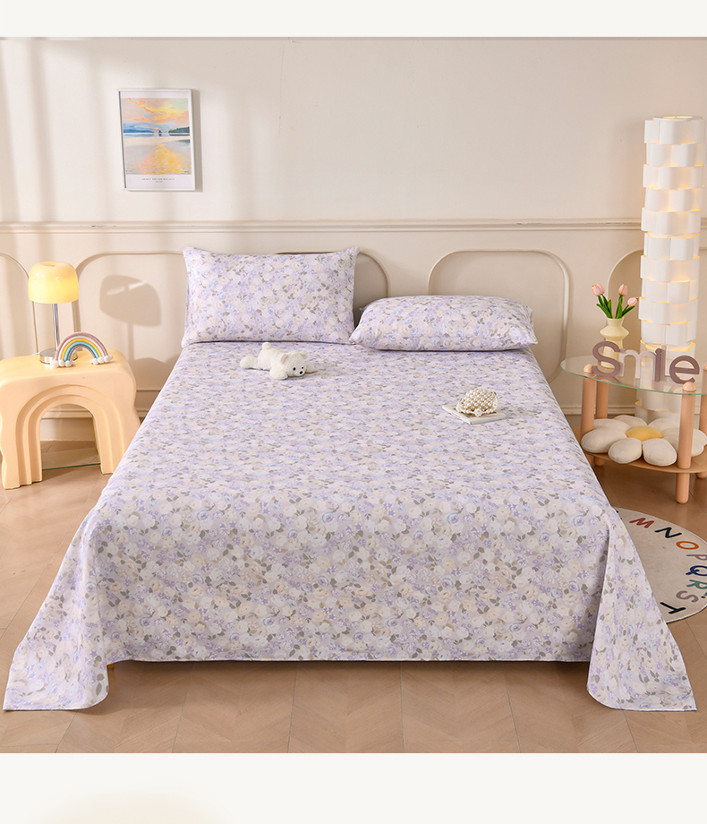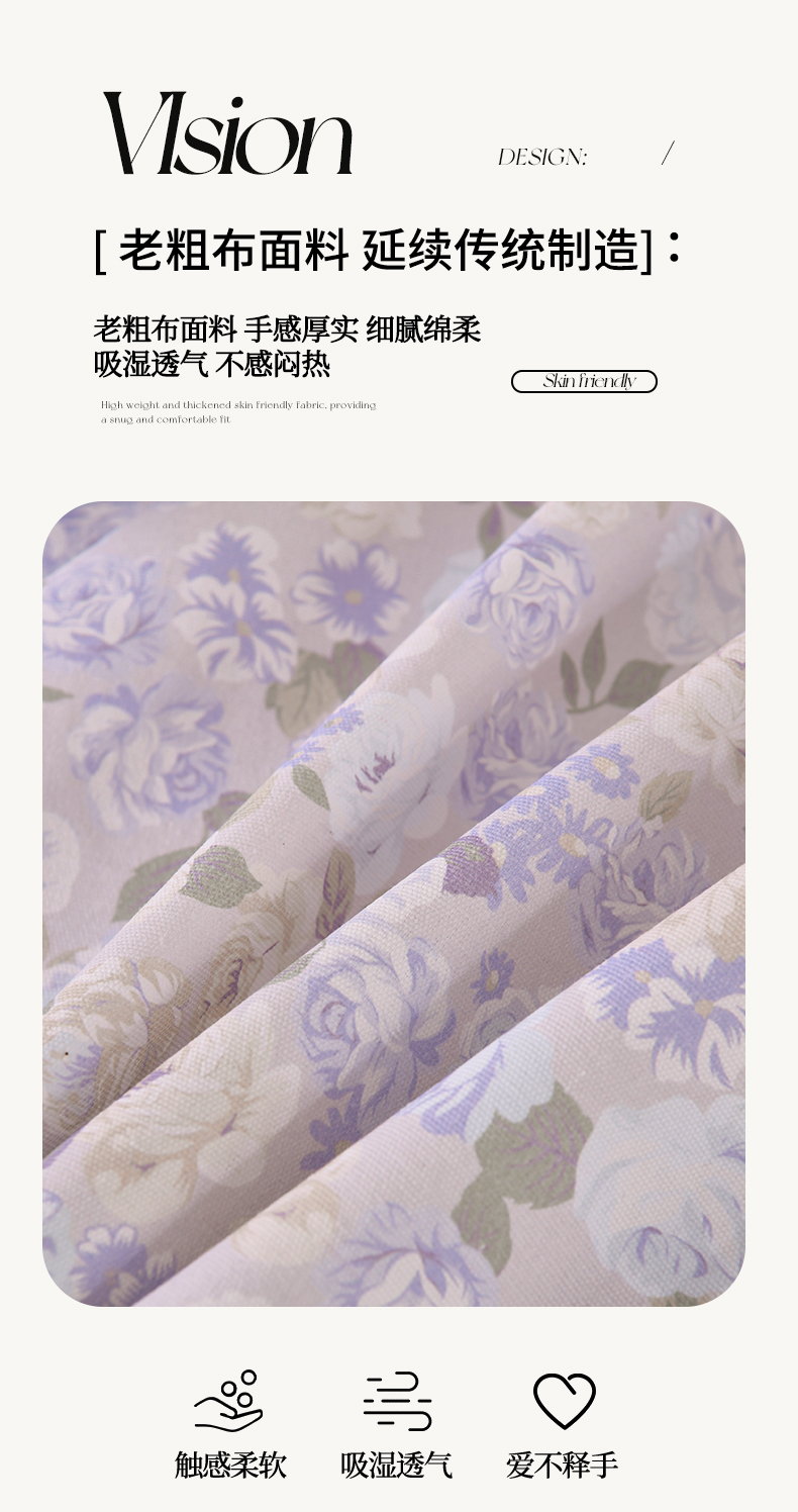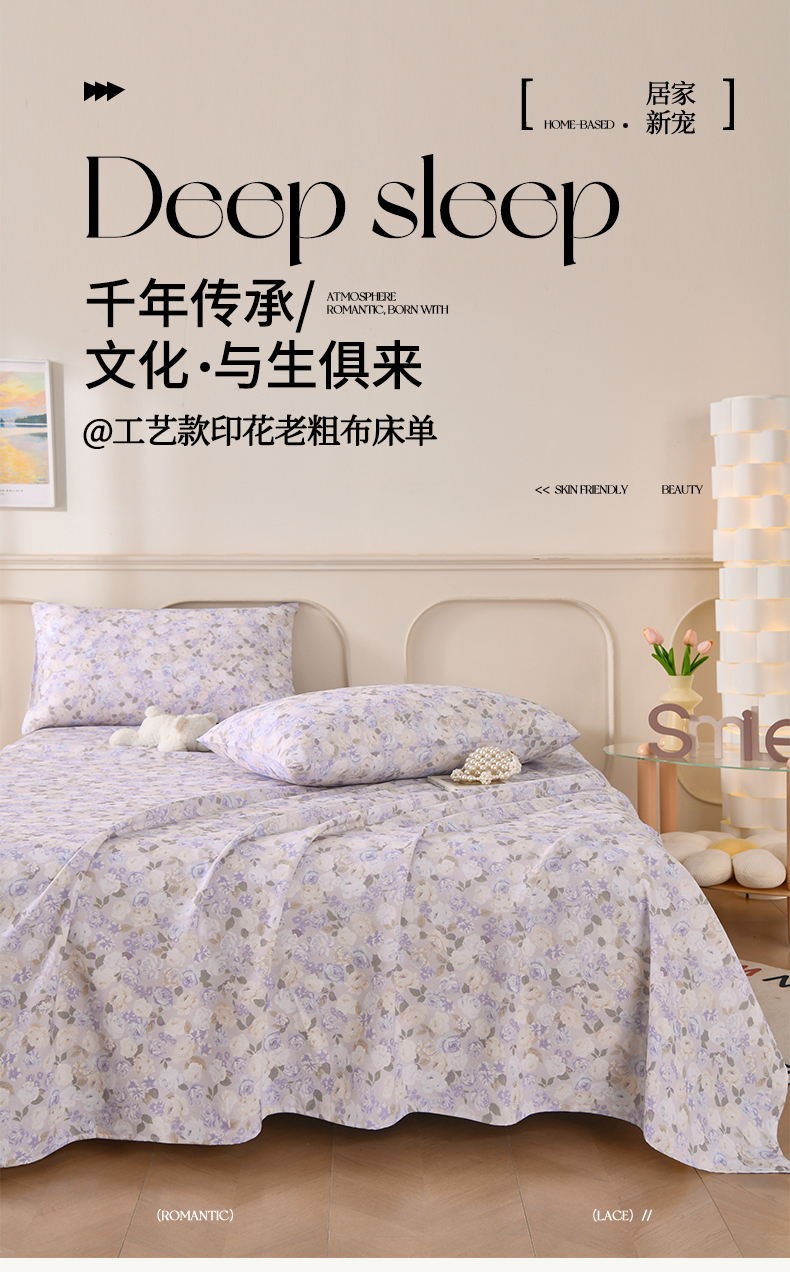 • 91家纺网 家纺一手货源 找家纺 悠米悠家 2026新款工艺款印花老粗布床单单品床单床单单件凉席席子 柔紫花雾叙