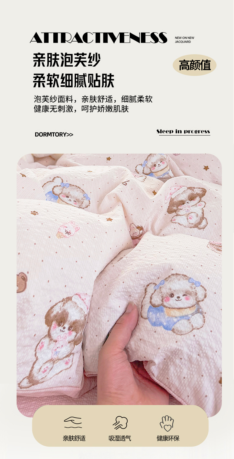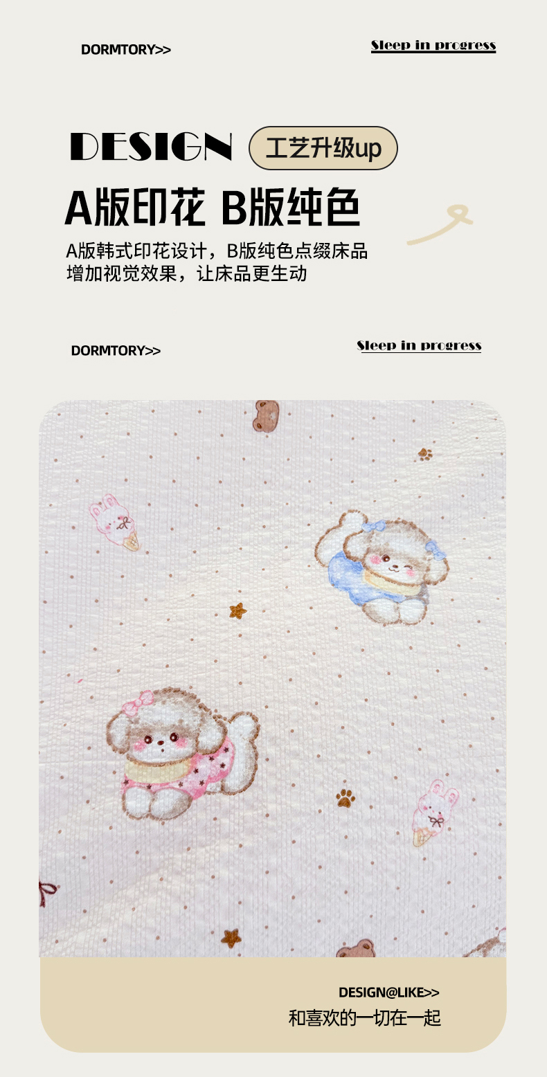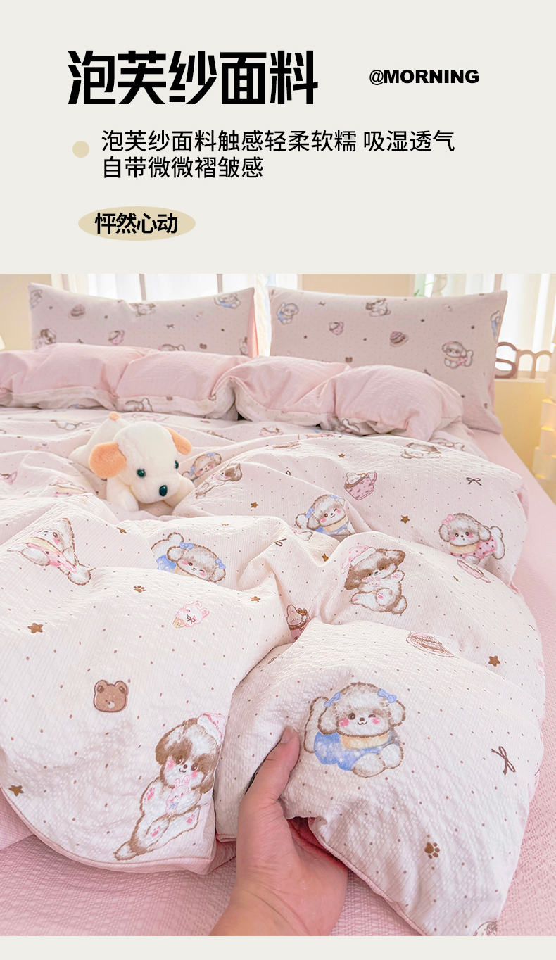 当前位置: 91家纺网 > 商品网购 > 床品套件 > 四件套 > 其它四件套 > 悠米悠家 2026春夏新款高克重A类泡芙纱泡泡皱皱纱四件套 软糯萌犬-床单款