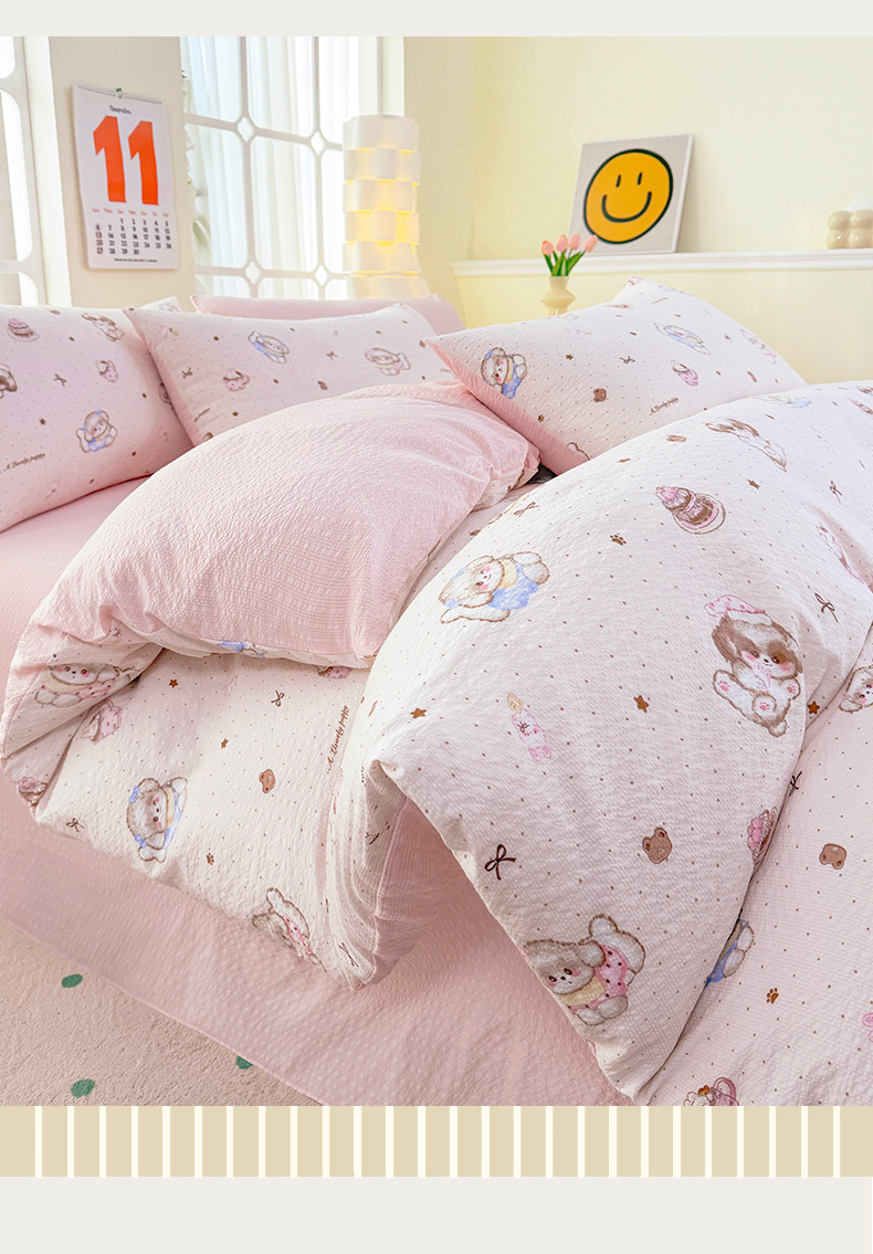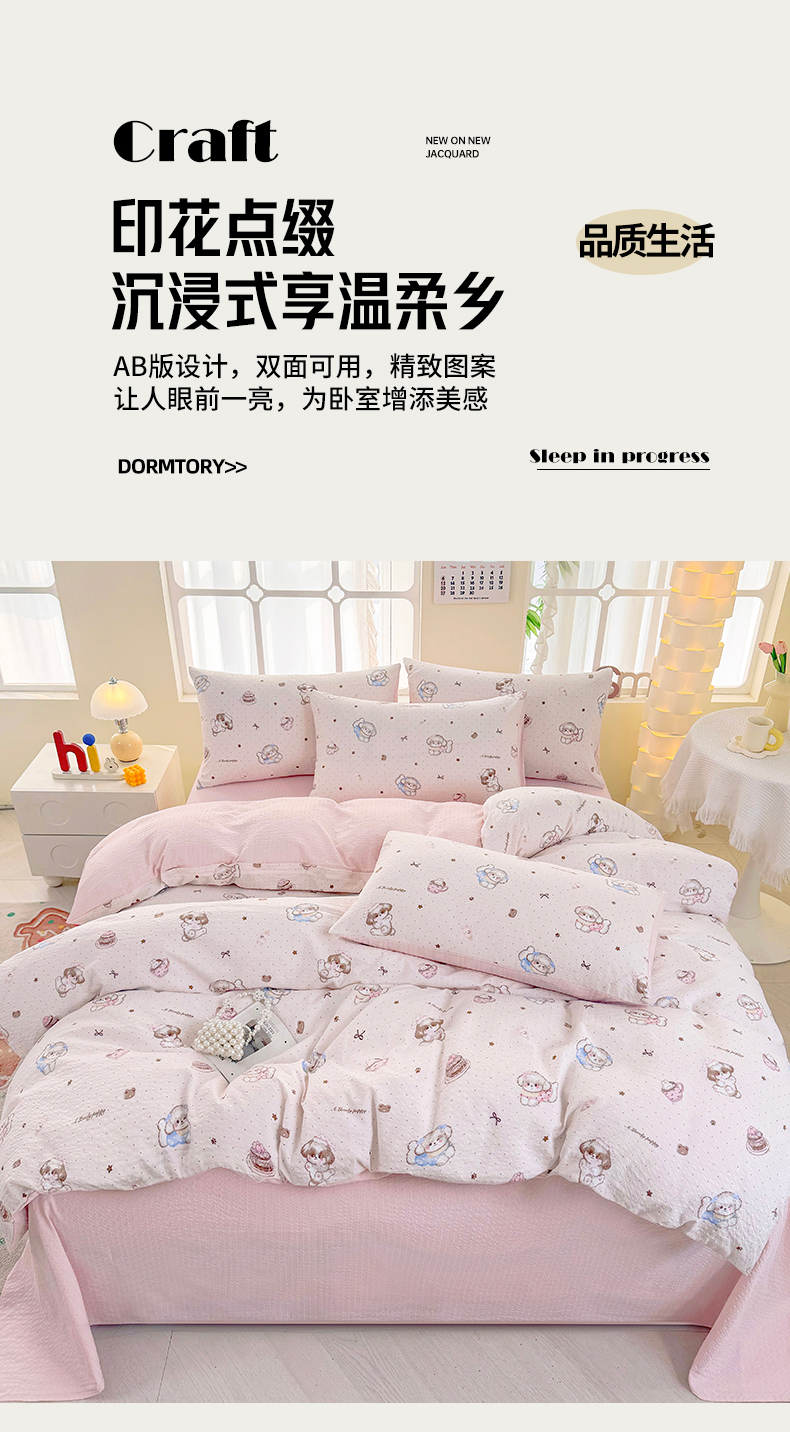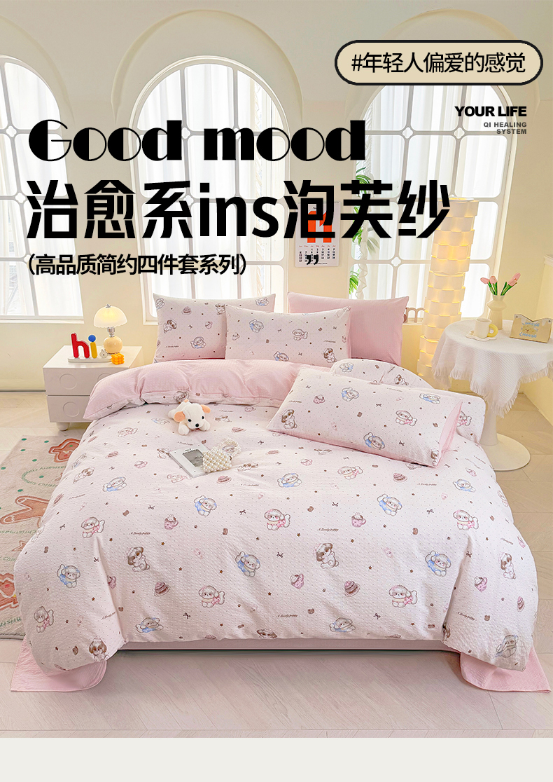 当前位置: 91家纺网 > 商品网购 > 床品套件 > 四件套 > 其它四件套 > 悠米悠家 2026春夏新款高克重A类泡芙纱泡泡皱皱纱四件套 软糯萌犬-床单款