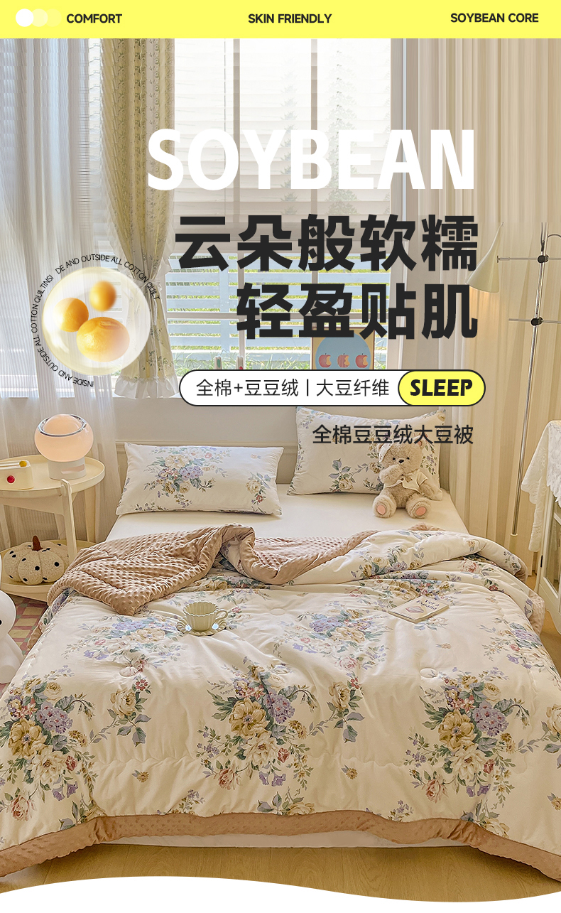 (总)梦依依 2025新款全棉大豆纤维被-风格二,云中忆,南瓜酥-米,守护甜心,屋顶花园,山茶芝士,幸运花语,恋爱熊,枝上花,森物语-兰,樱花粉-黄,沐风,白白熊-灰,紫葡萄,芬芳-紫,草莓兔,莉娅,薇拉,蘑菇屋