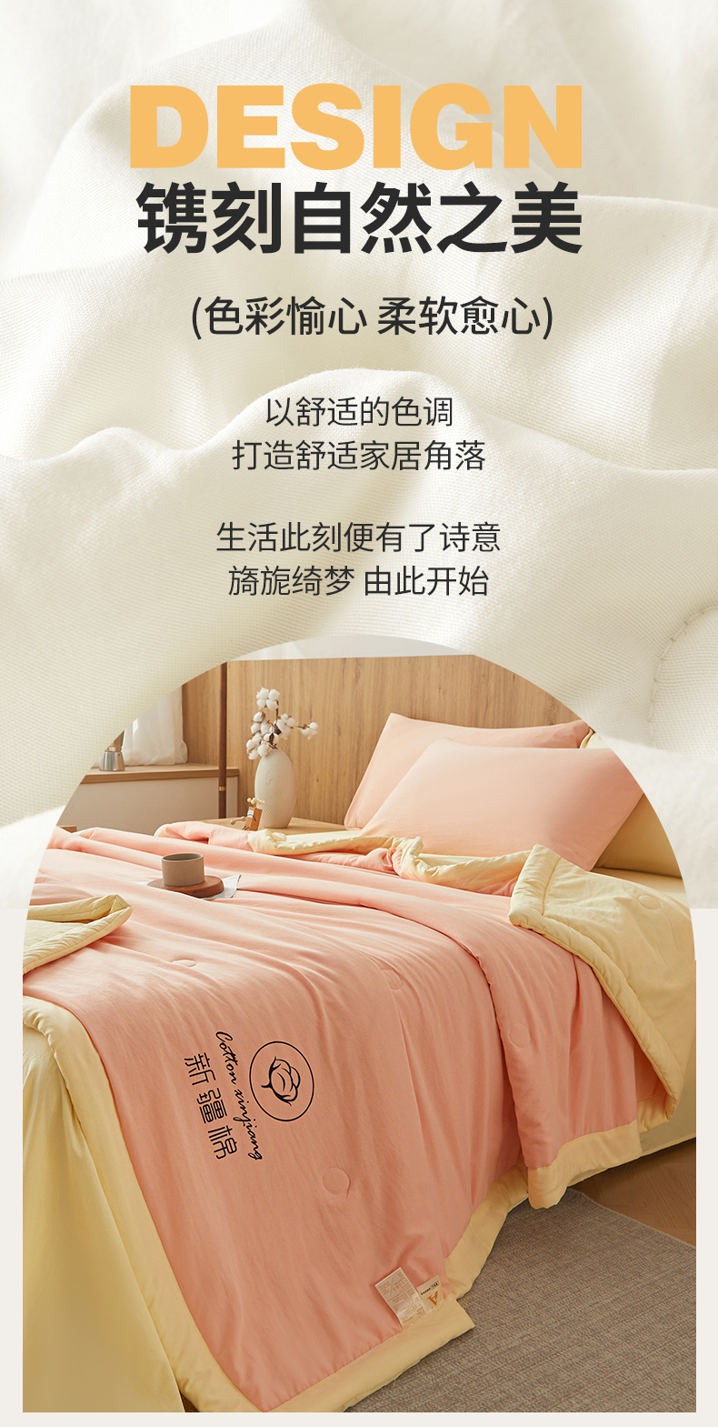 商品名称:晓时候 2026新款无印风水洗棉新疆棉花被夏被夏凉被空调被子 素夏-粉黄